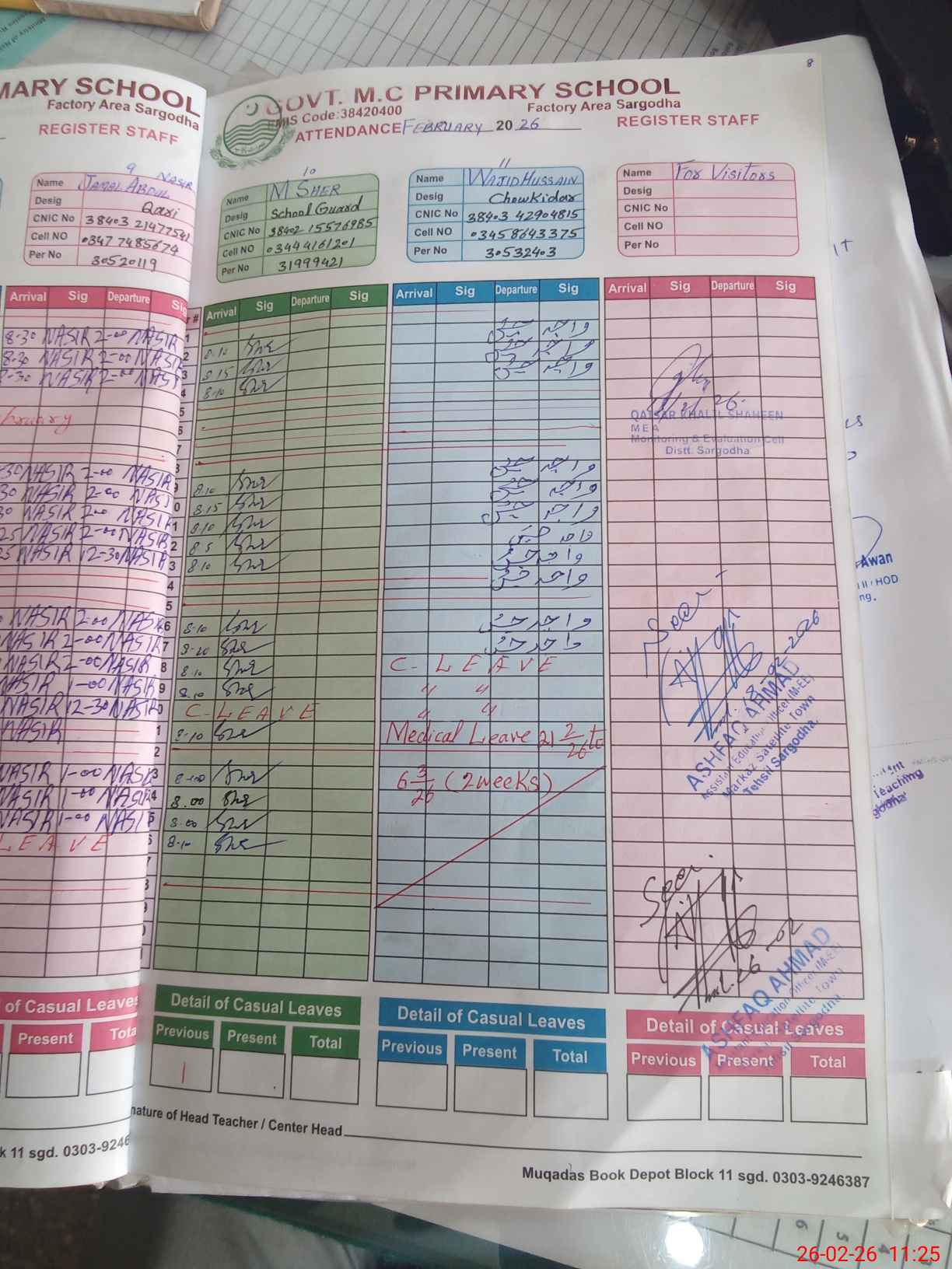 | EMIS Code: 38420400 | Name of School: GPS MC NO. 11 FACTORY AREA SARGODHA | |||