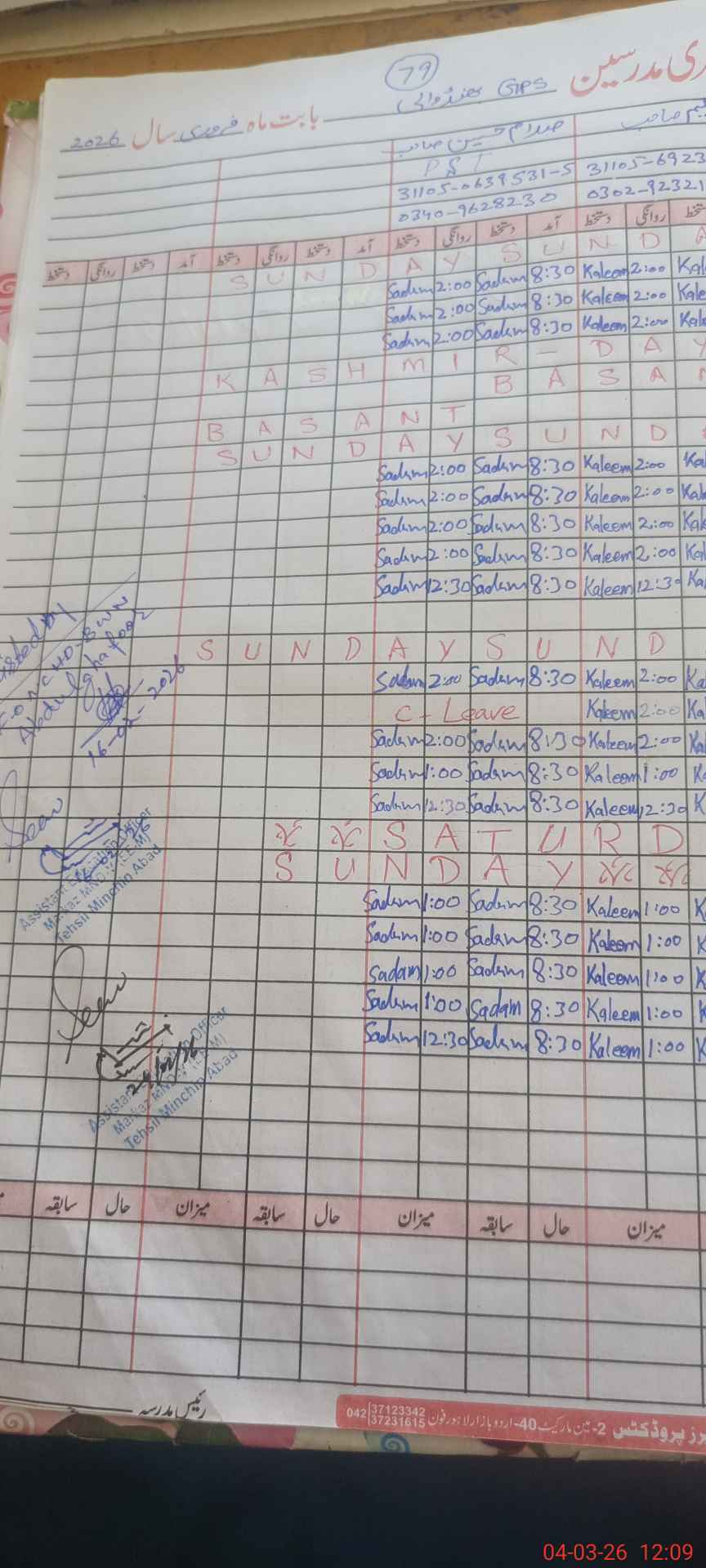 | Name: Mu**** Ab**** Designation: (School Headmaster's/Headmistress's) PST Phone/Cell Number: 03**** |