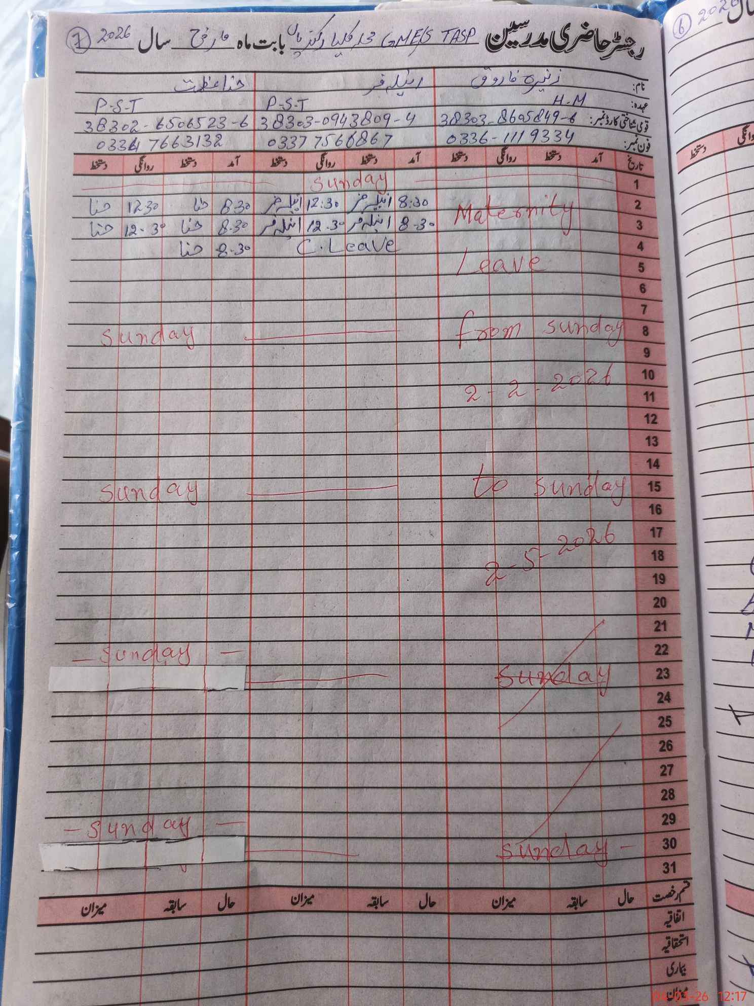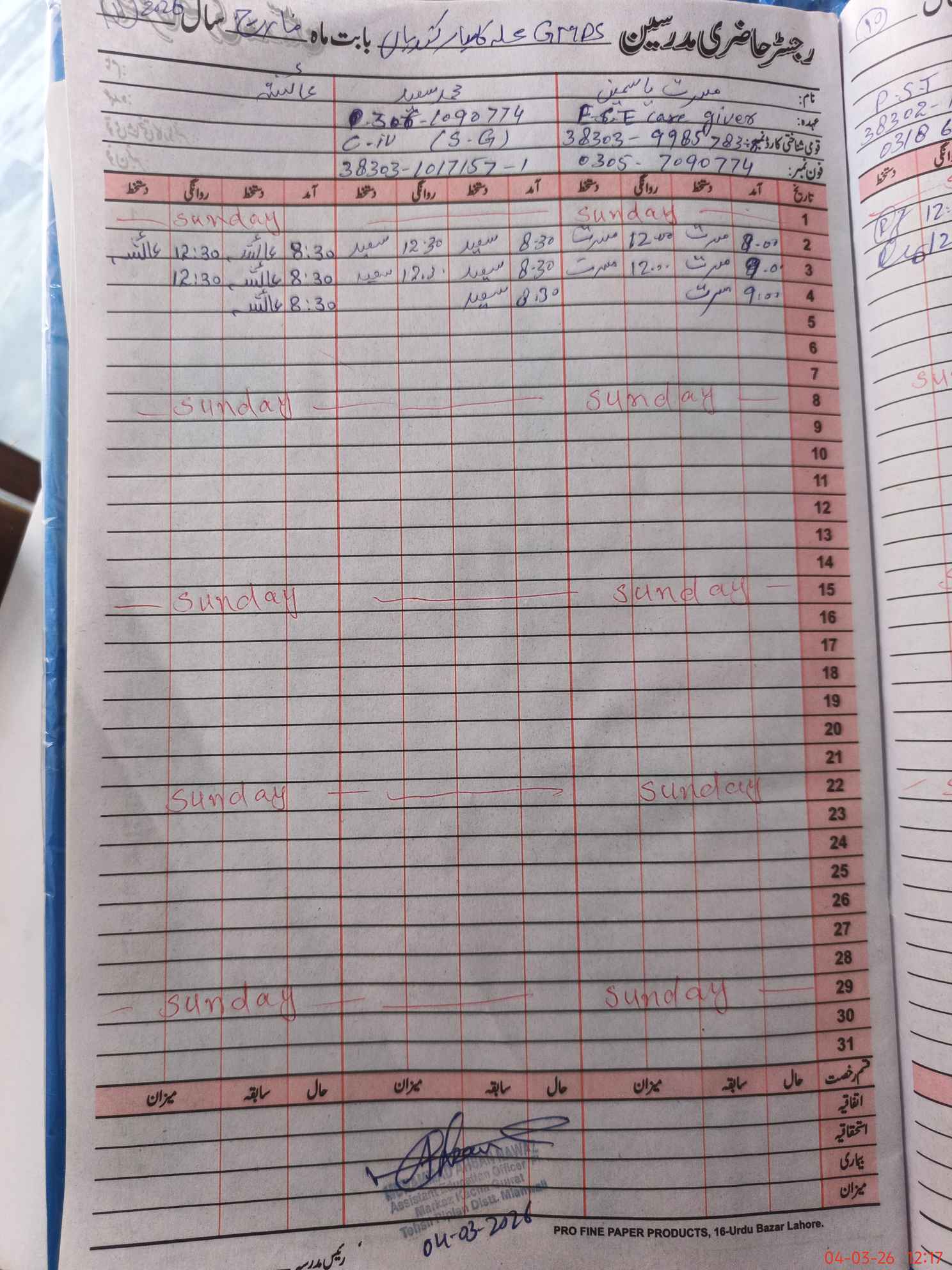 | Name: Zu**** Fa**** Designation: (School Headmaster's/Headmistress's) PST Phone/Cell Number: 03**** |