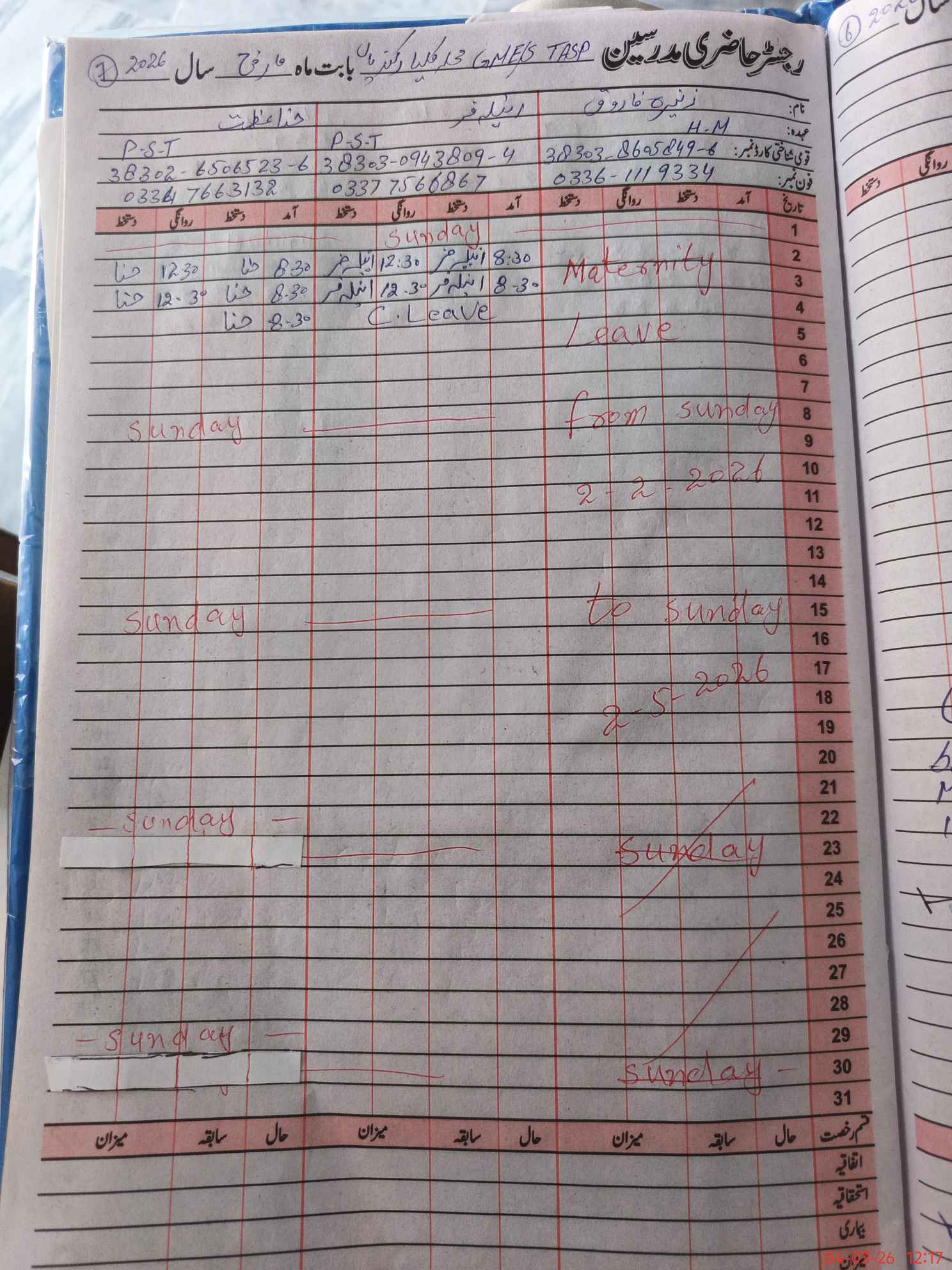 | 38**** | Na**** Gu**** | PST Science/Maths | Regular | 0 | 0 | 0 | 0 | 0 | 0 | 0 | 0 | 0 | Maternity |