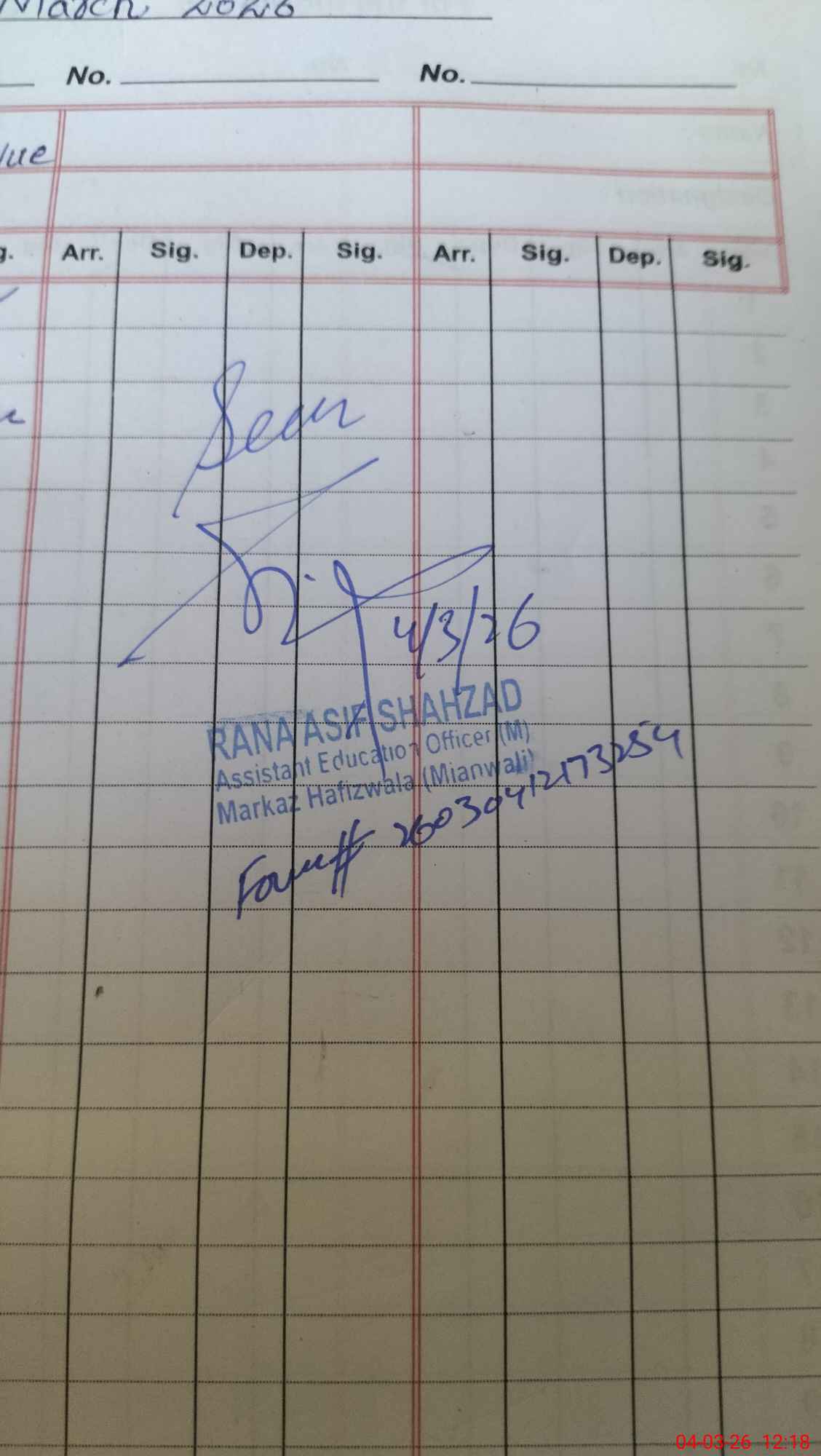 | Name: Mu**** Sh**** Designation: (School Headmaster's/Headmistress's) PST Phone/Cell Number: 03**** |