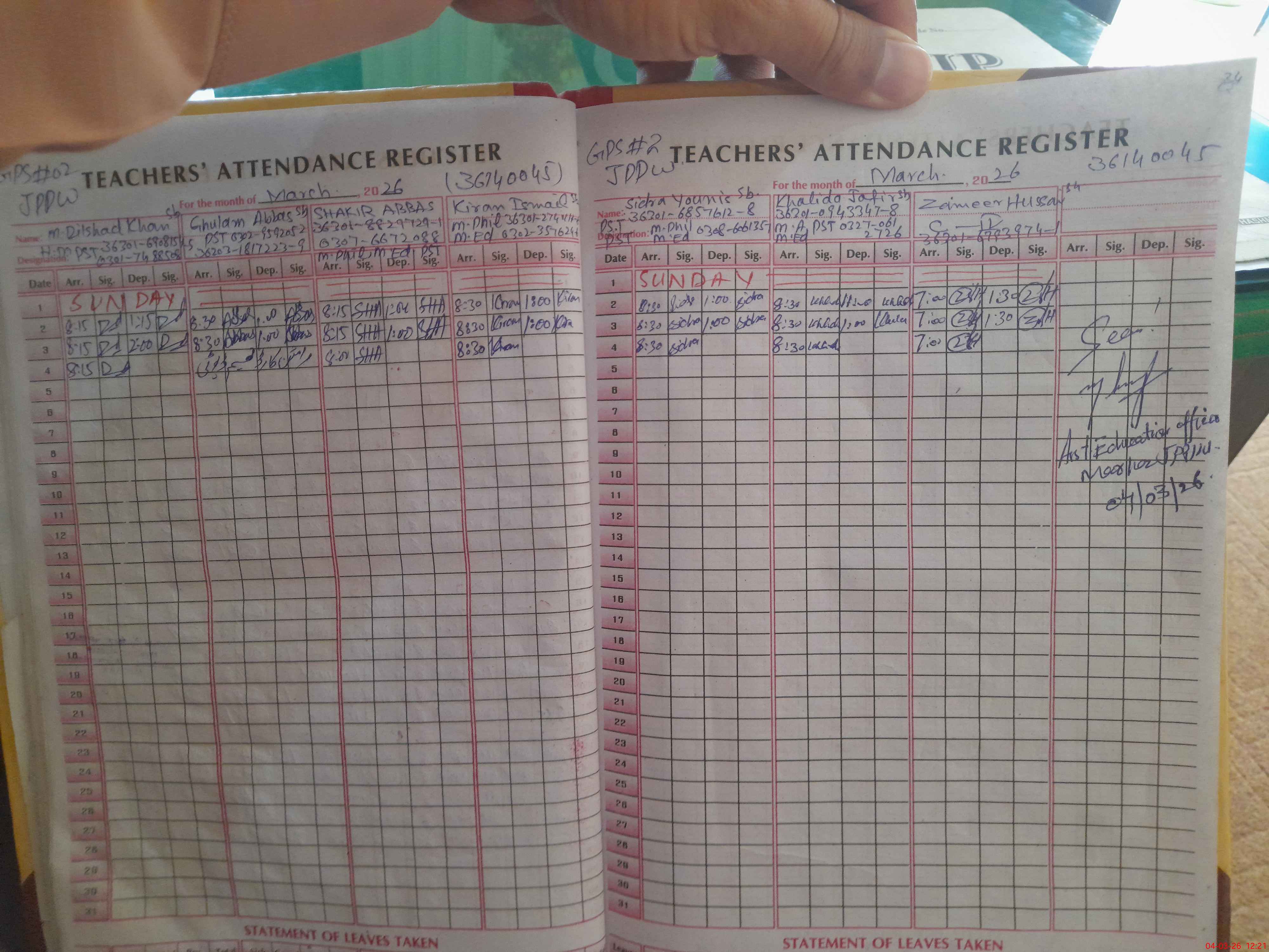 | 36**** | Gh**** Ab**** | PST Arts | Regular | 0 | 0 | 0 | 0 | 0 | 0 | 0 | 0 | 0 | Exam Duty |