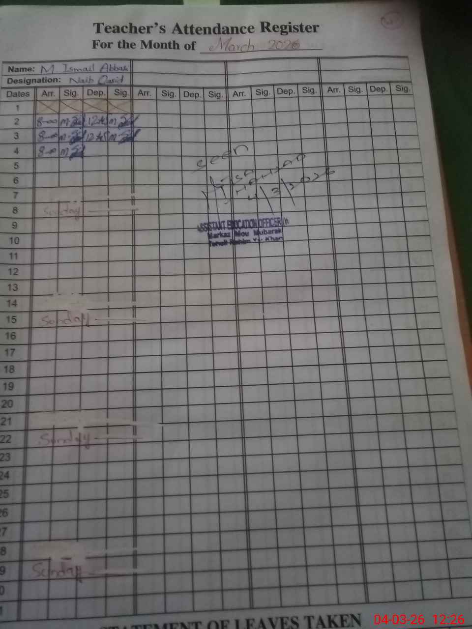 | 31**** | Qa**** Ta**** | EST Science | Regular | 0 | 0 | 0 | 0 | 0 | 0 | 0 | 0 | 0 | Casual |