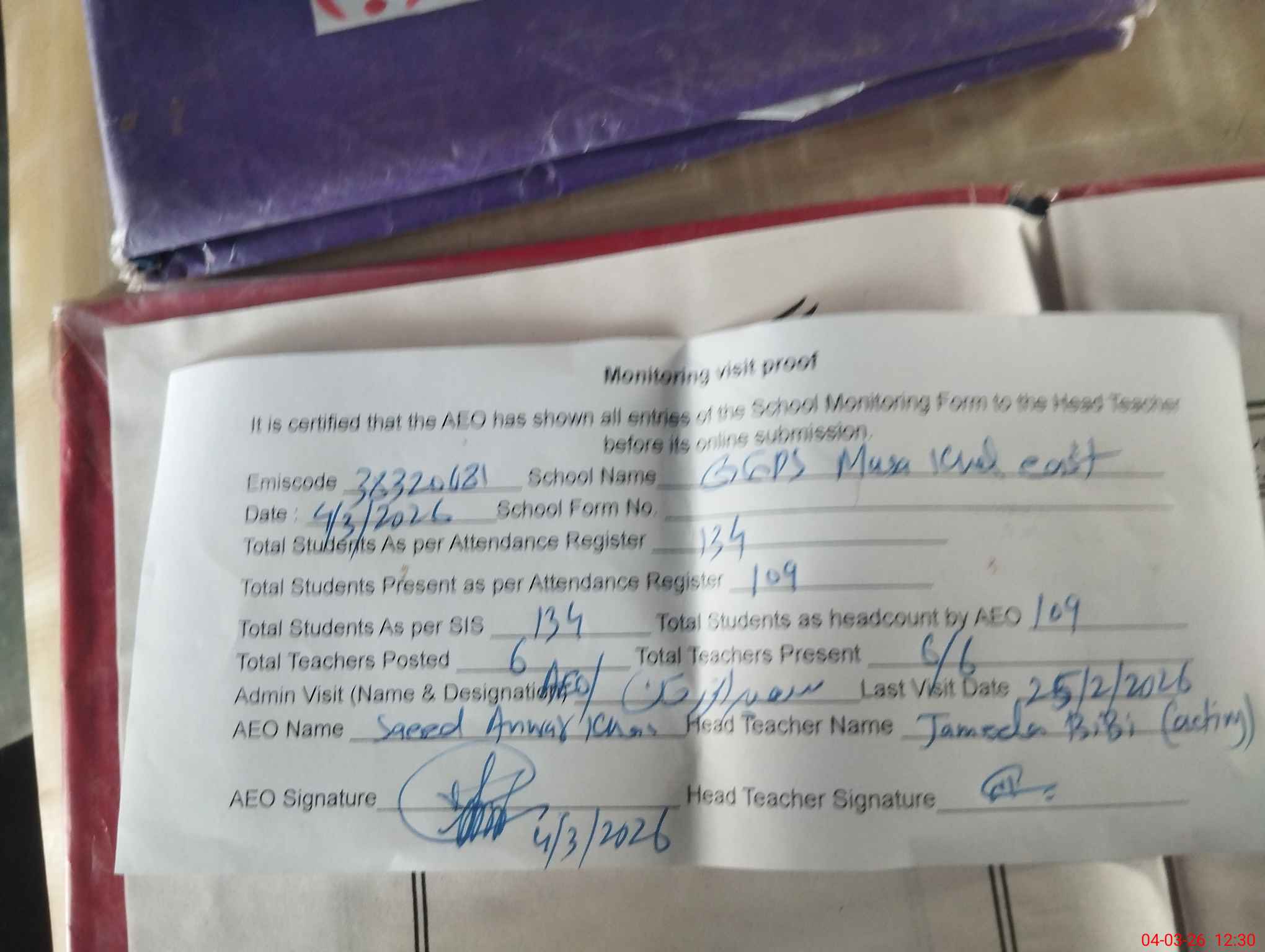 | EMIS Code: 38320681 | Name of School: GGPS MUSA KHEL EAST | |||
