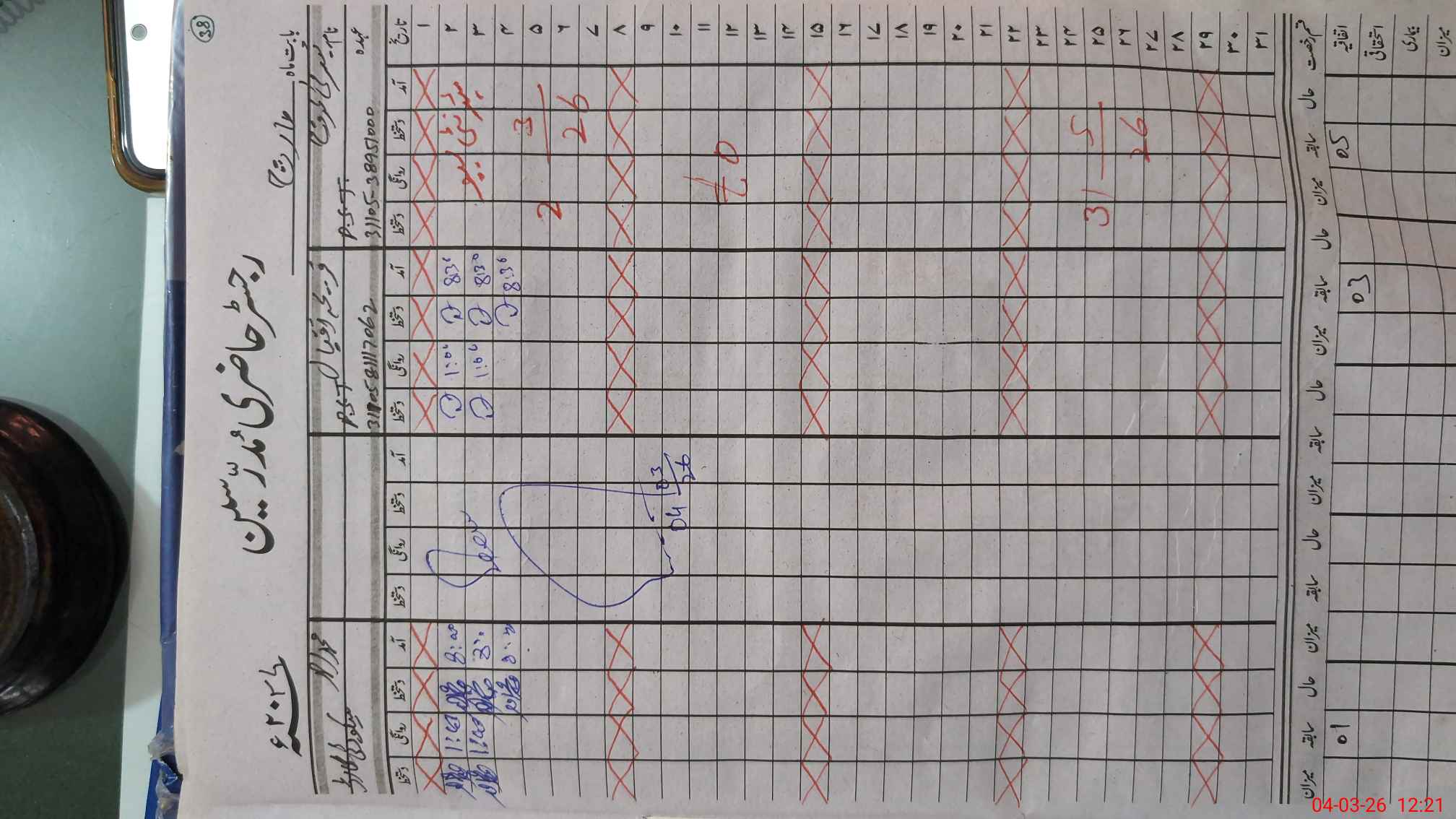 | CNIC | Full Name | Designation | R/C | Absence during last cal. month |
