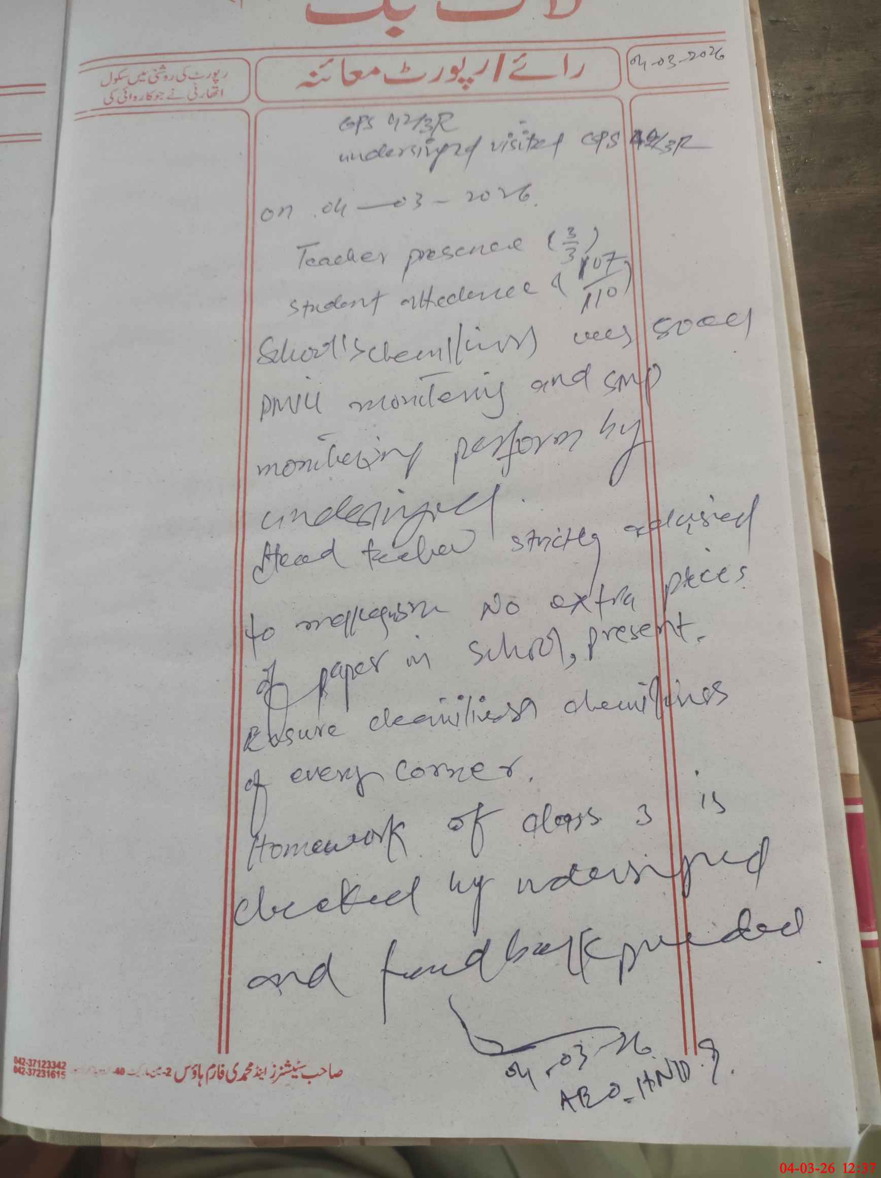 | EMIS Code: 31140269 | Name of School: GPS CHAK NO.42/3-R | |||