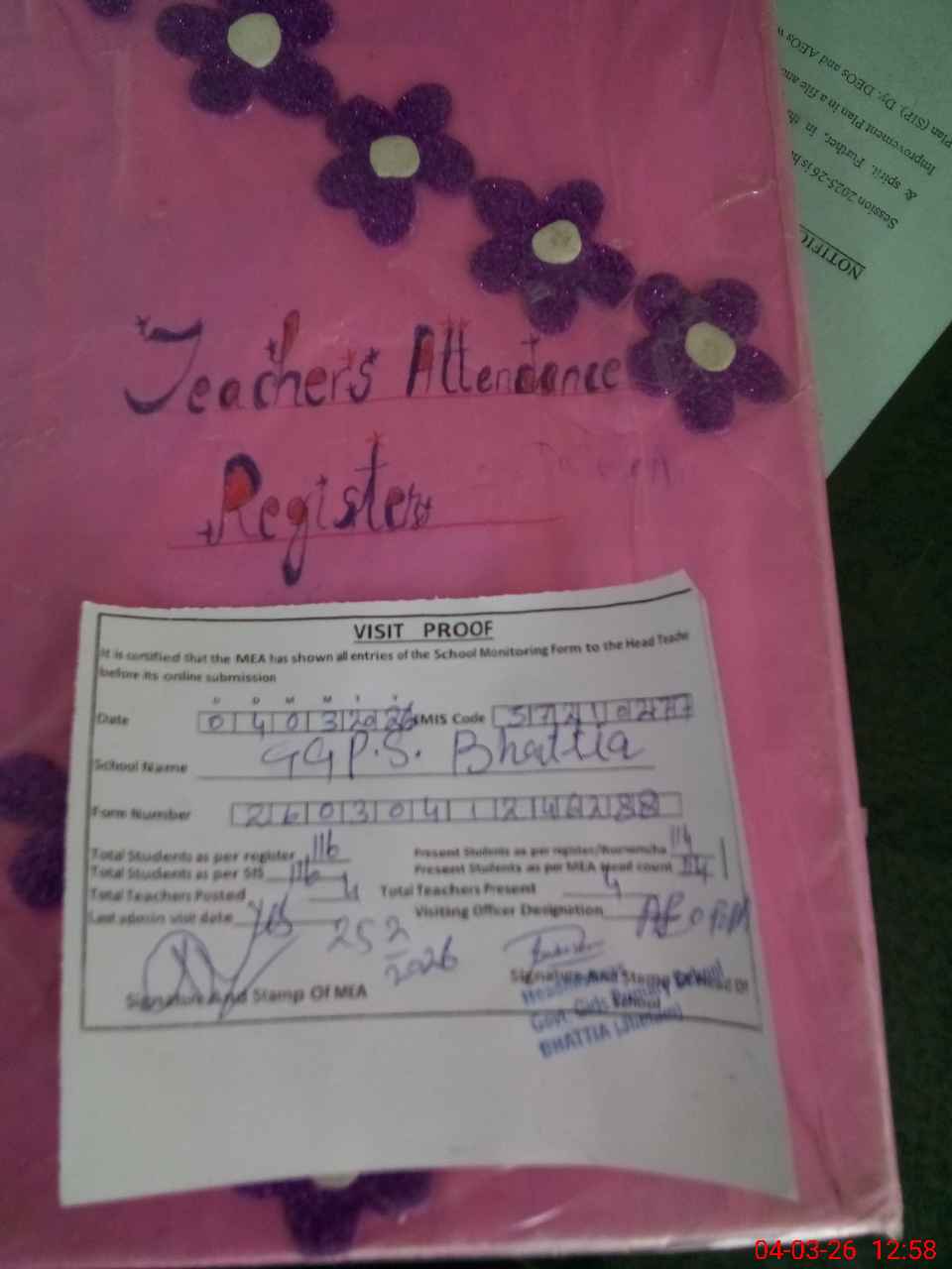 | EMIS Code: 37210277 | Name of School: GGPS BHATTIA | |||