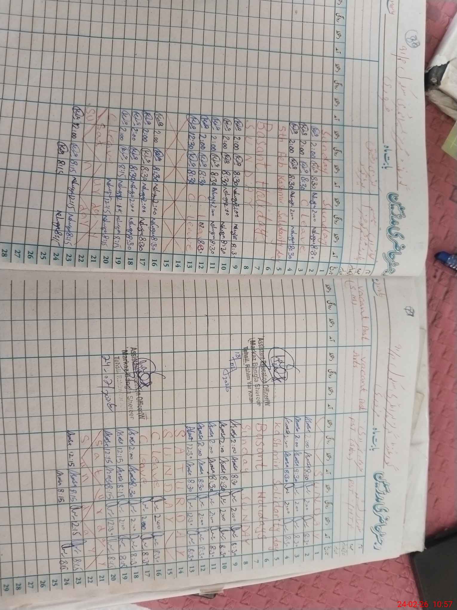 | CNIC | Full Name | Designation | R/C | Absence During Last Calender Month |
