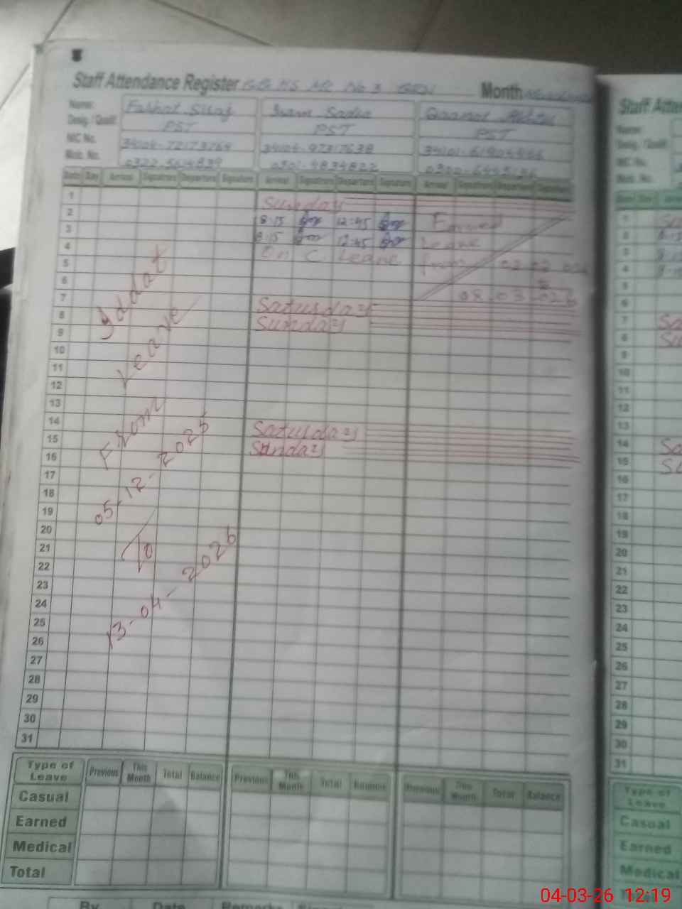 | 34**** | Sh**** Se**** | PST Arts | Regular | 0 | 0 | 0 | 0 | 0 | 0 | 0 | 0 | 0 | Exam Duty |