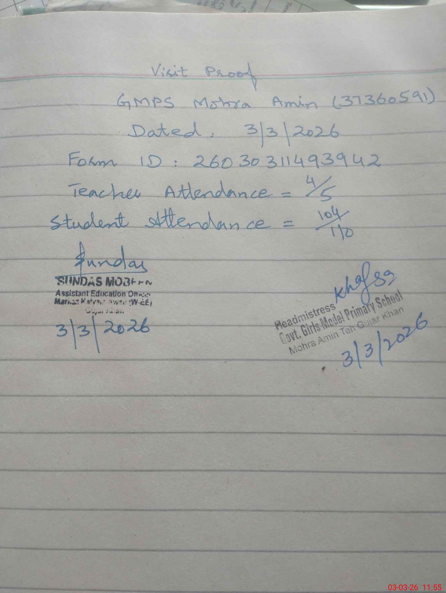 | EMIS Code: 37360591 | Name of School: GGPS MODEL MOHRA AMIN | |||