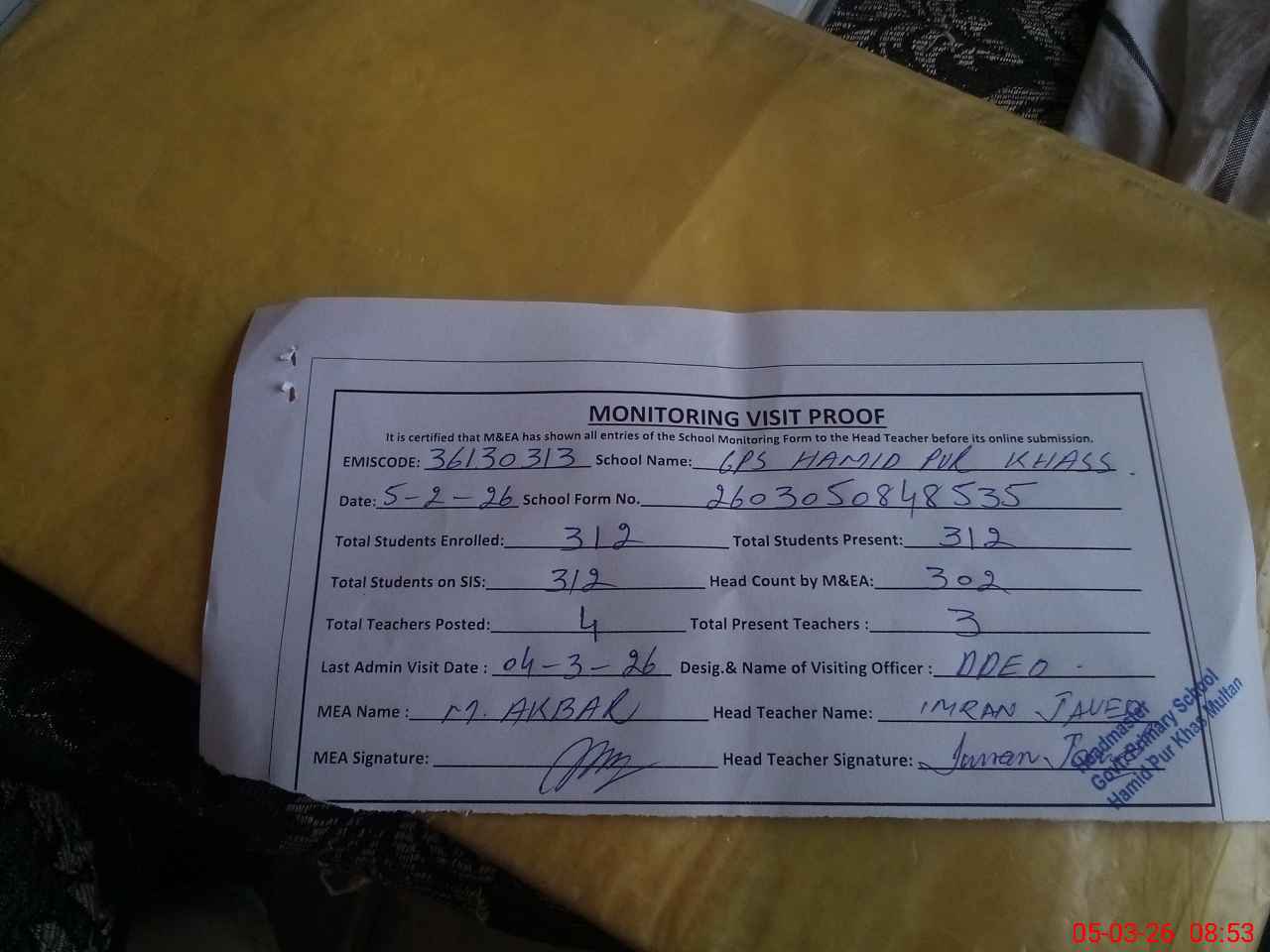 | EMIS Code: 36130313 | Name of School: GPS HAMIDPUR KHASS | |||