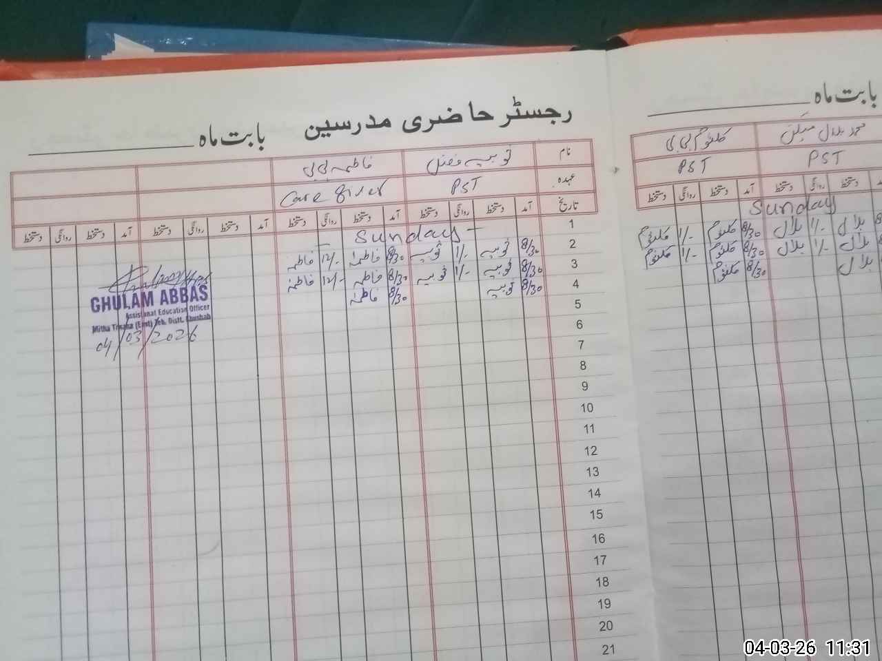 | Name: Um**** Ah**** Designation: (School Headmaster's/Headmistress's) PST Phone/Cell Number: 03**** |