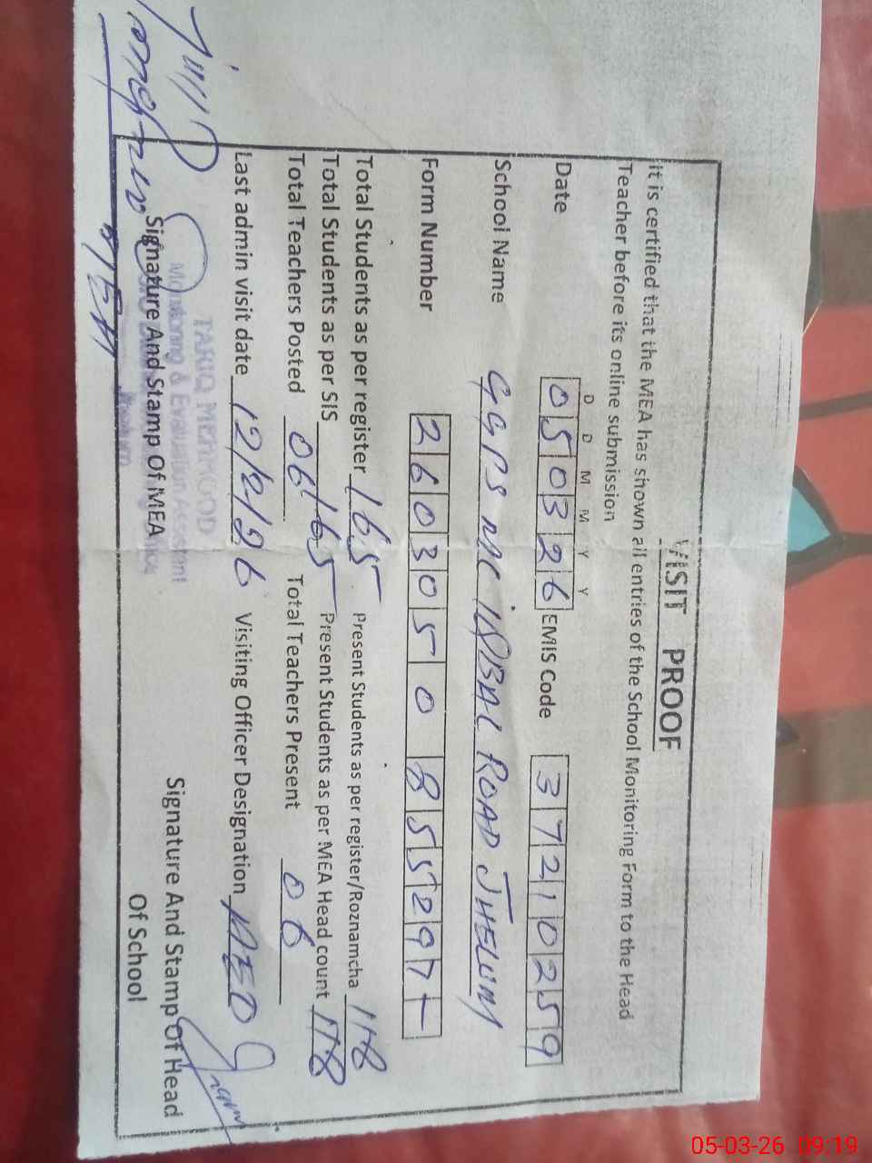 | EMIS Code: 37210259 | Name of School: GGPS MC IQBAL ROAD JHELUM | |||