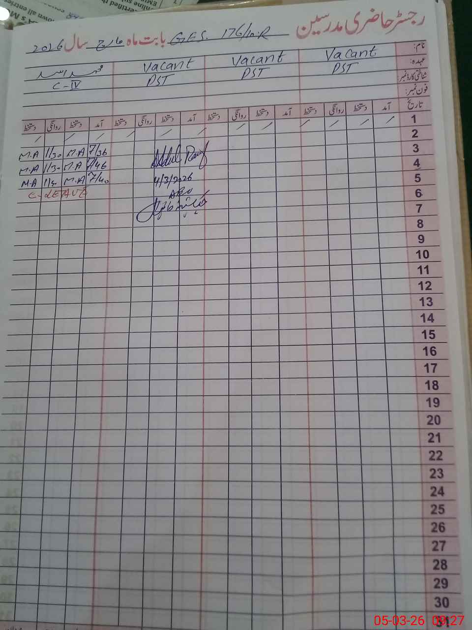 | Name: Ab**** Sh**** Designation: (School Headmaster's/Headmistress's) SST G Phone/Cell Number: 03**** |