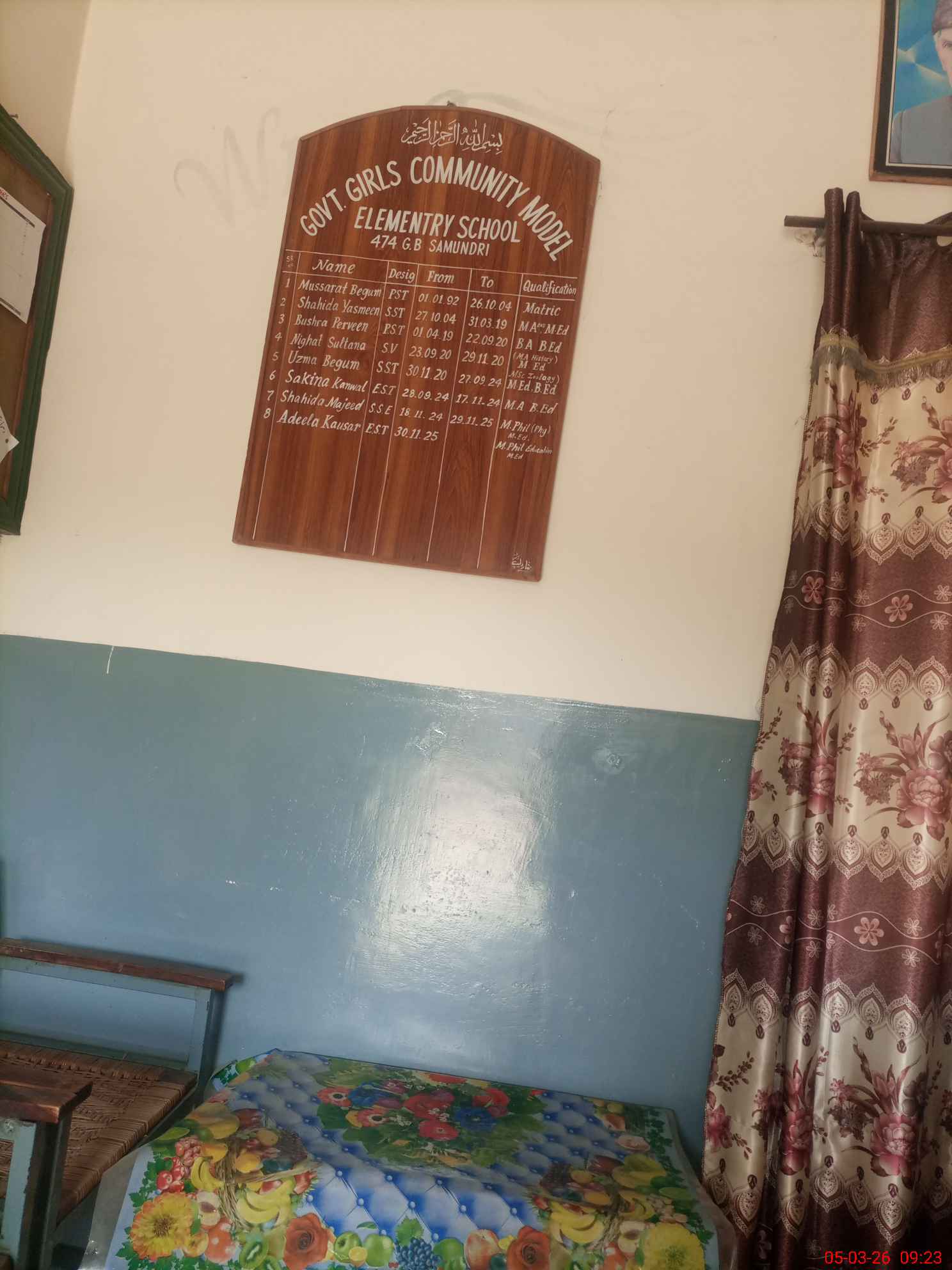 | District: FAISALABAD | Tehsil: SAMUNDARI | Markaz: SAMMUNDRI 1 - FEMALE | Level: Middle | |