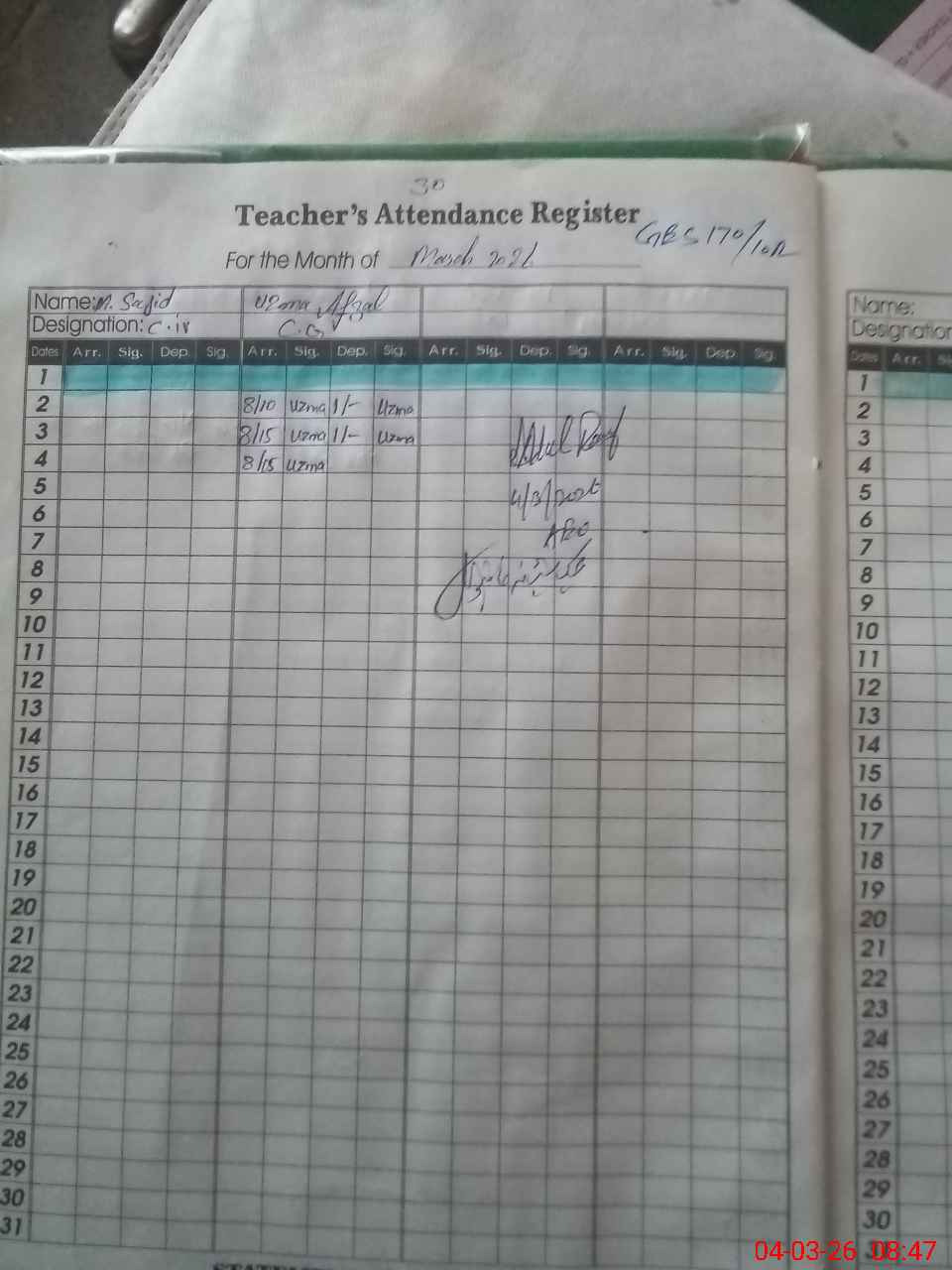 | Name: Fa**** Us**** Designation: (School Headmaster's/Headmistress's) SST Phone/Cell Number: 03**** |