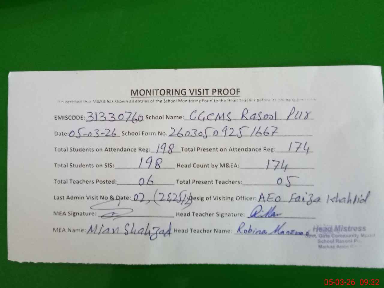| EMIS Code: 31330760 | Name of School: GGCMS RASOOL PUR | |||