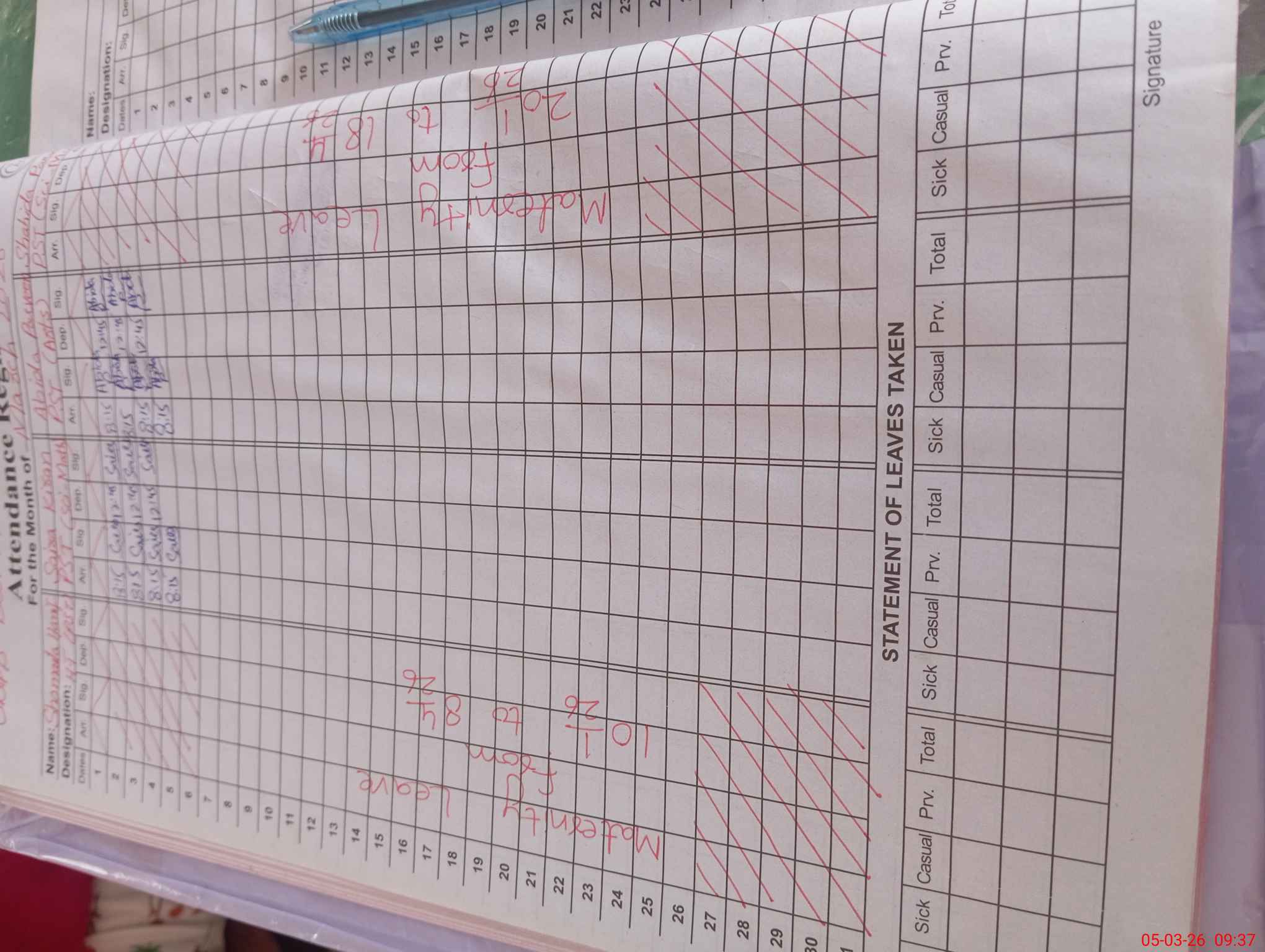 | Leave | Duty | Absent | Maternity | Medical | Ex- Pak |