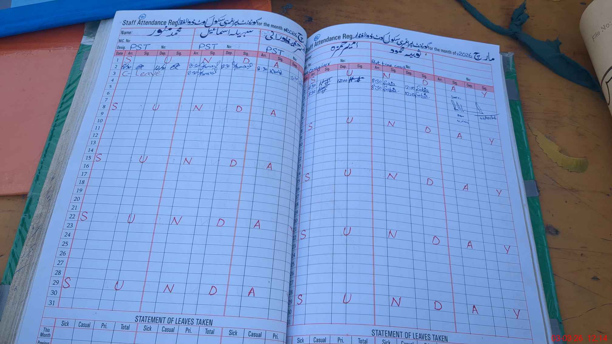 | Leave | Duty | Absent | Maternity | Medical | Ex- Pak |