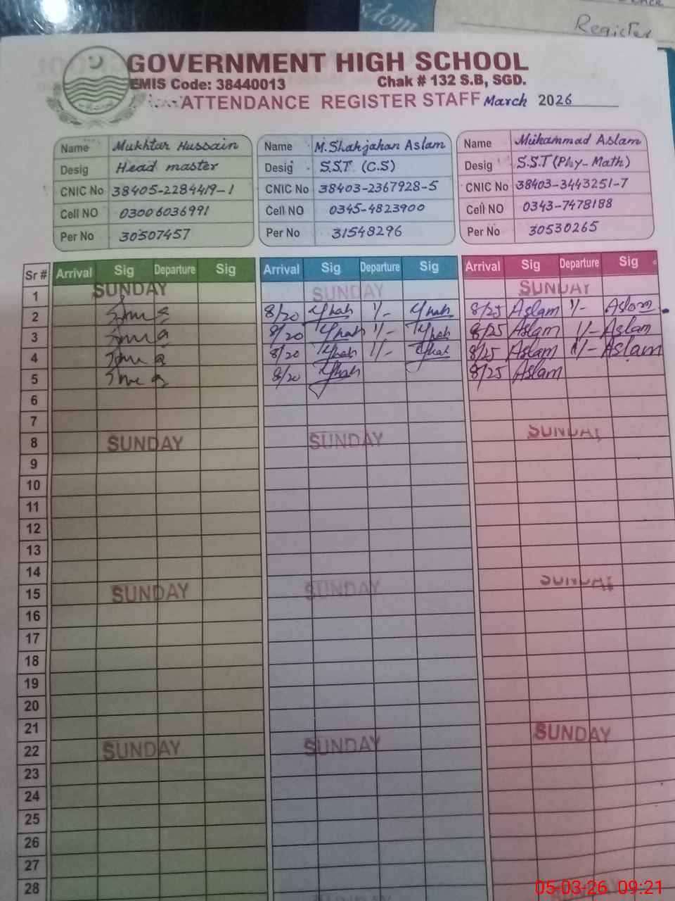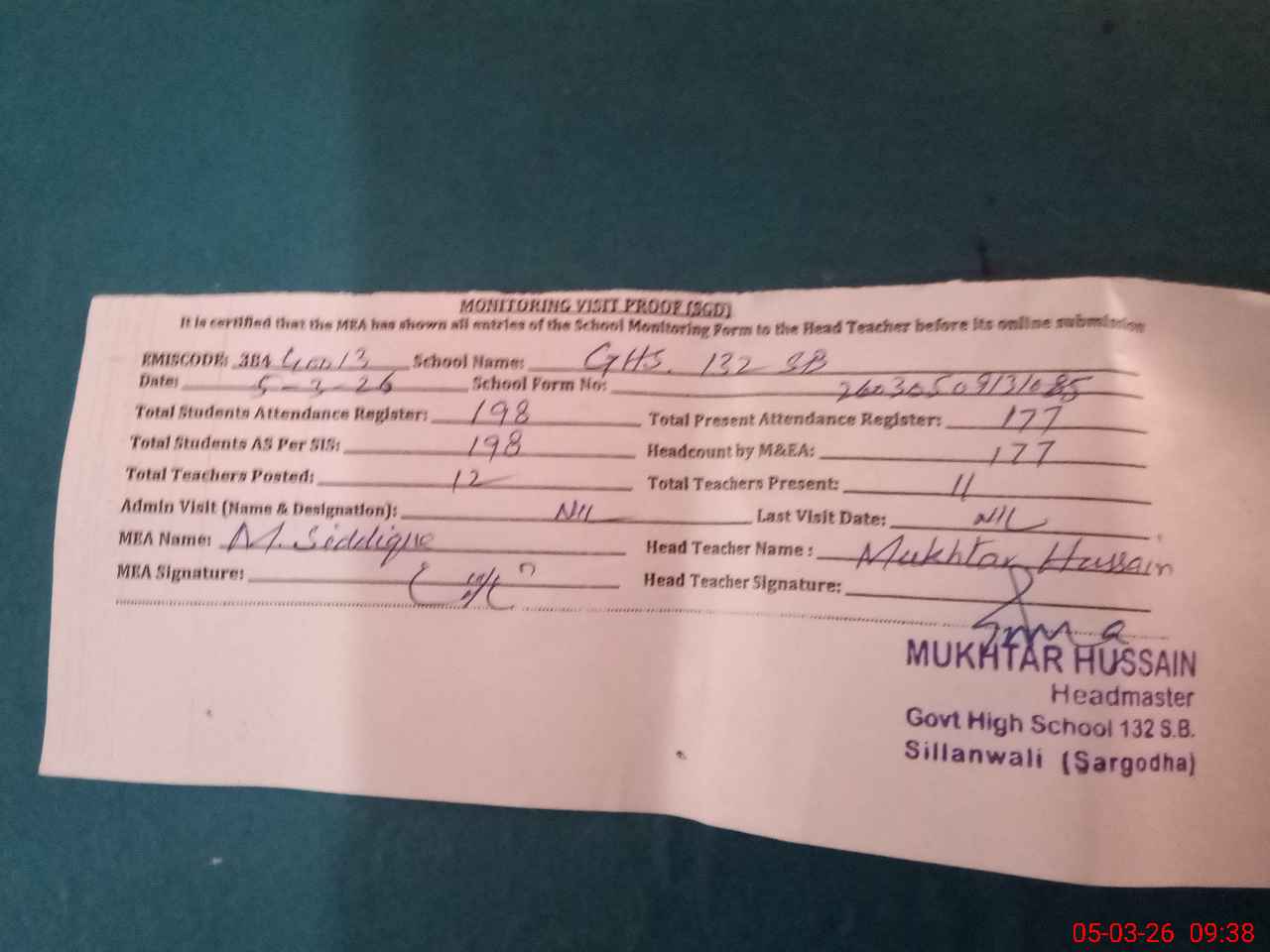 | EMIS Code: 38440013 | Name of School: GHS CHAK NO.132 SB | |||