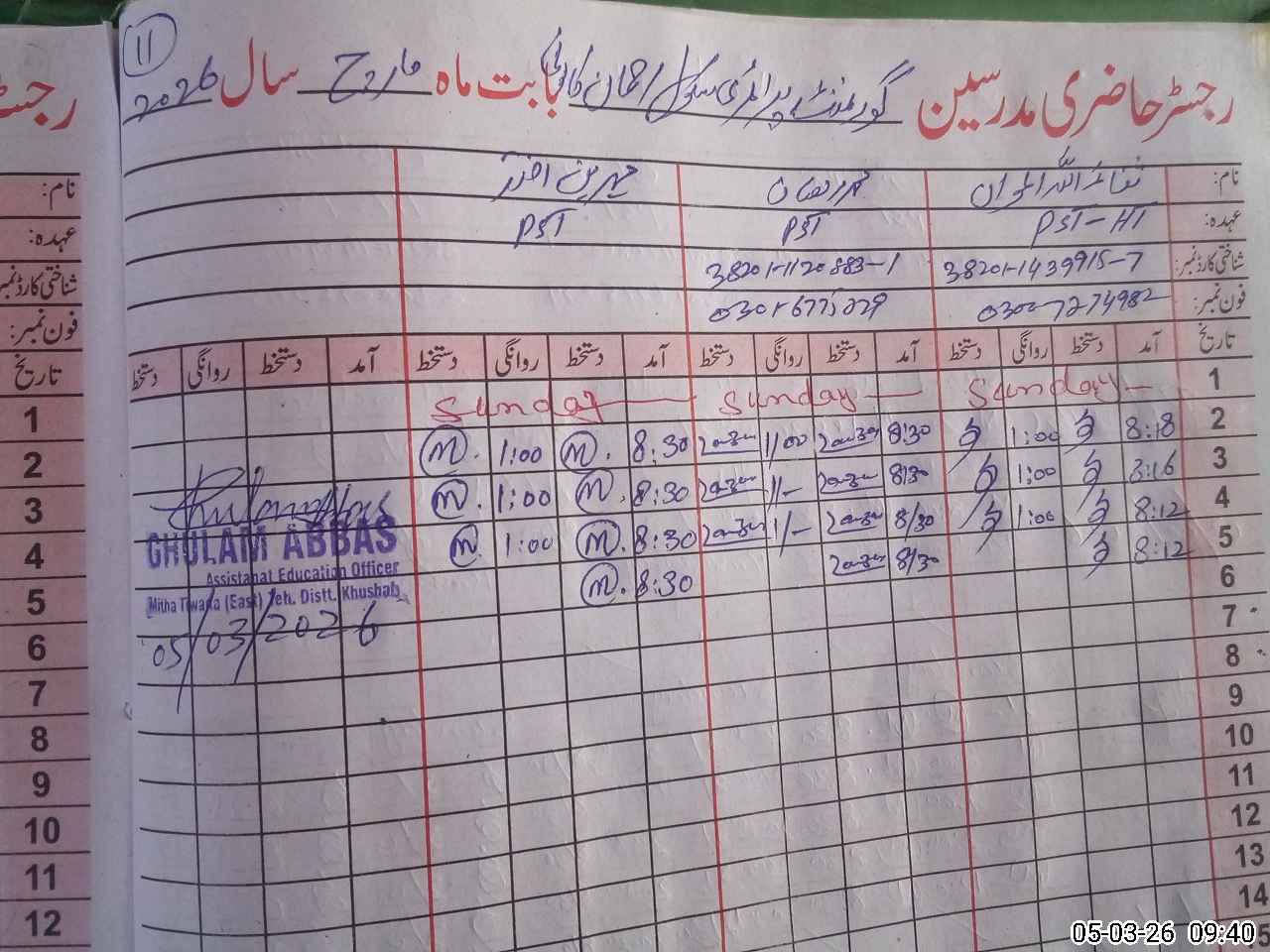 | EMIS Code: 38210973 | Name of School: GPS REHMAN COLONY JAUHARABAD | |||