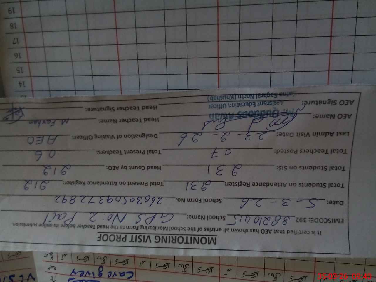 | Certified that this School was Inspected by the Undersigned MEA/DMO Today and the Information Stated Above is as Per Record. | |||||