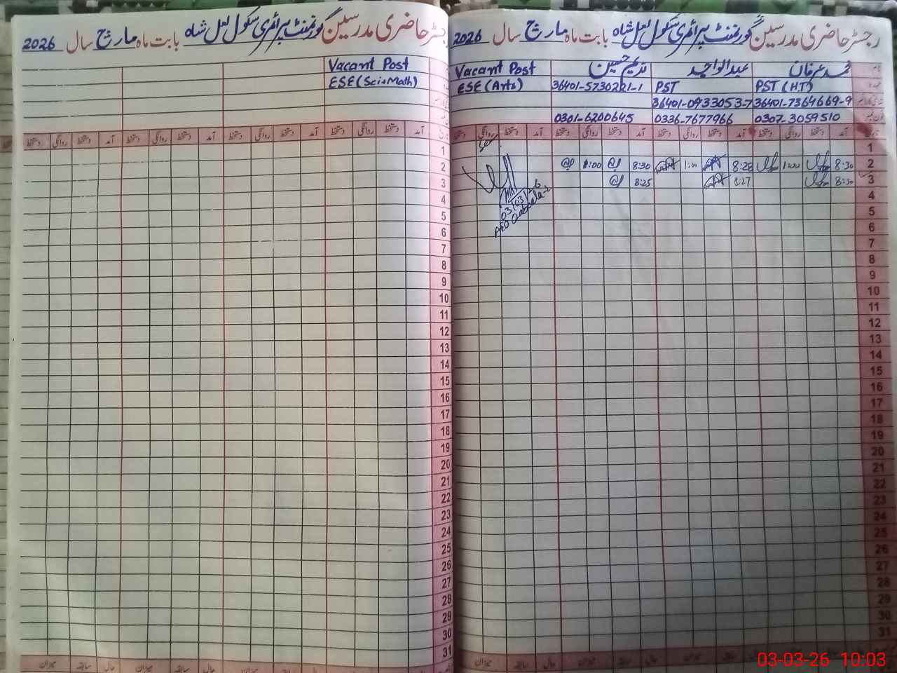 | Name: Mo**** Ir**** Designation: (School Headmaster's/Headmistress's) PST Phone/Cell Number: 03**** |