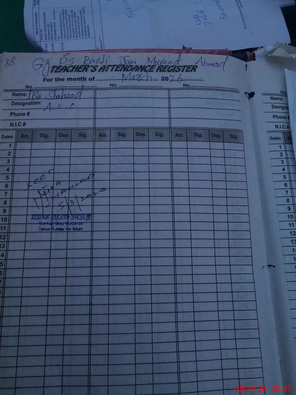 | Name: MA**** BI**** Designation: (School Headmaster's/Headmistress's) PST/PTC/JV Phone/Cell Number: 03**** |