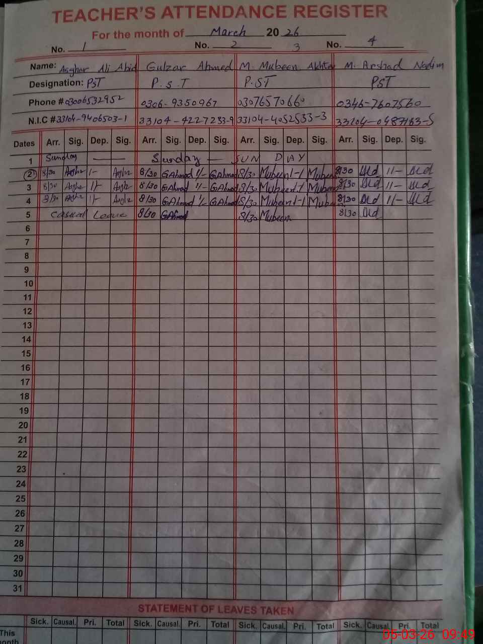 | Name: As**** Al**** Ab**** Designation: (School Headmaster's/Headmistress's) PST Phone/Cell Number: 03**** |