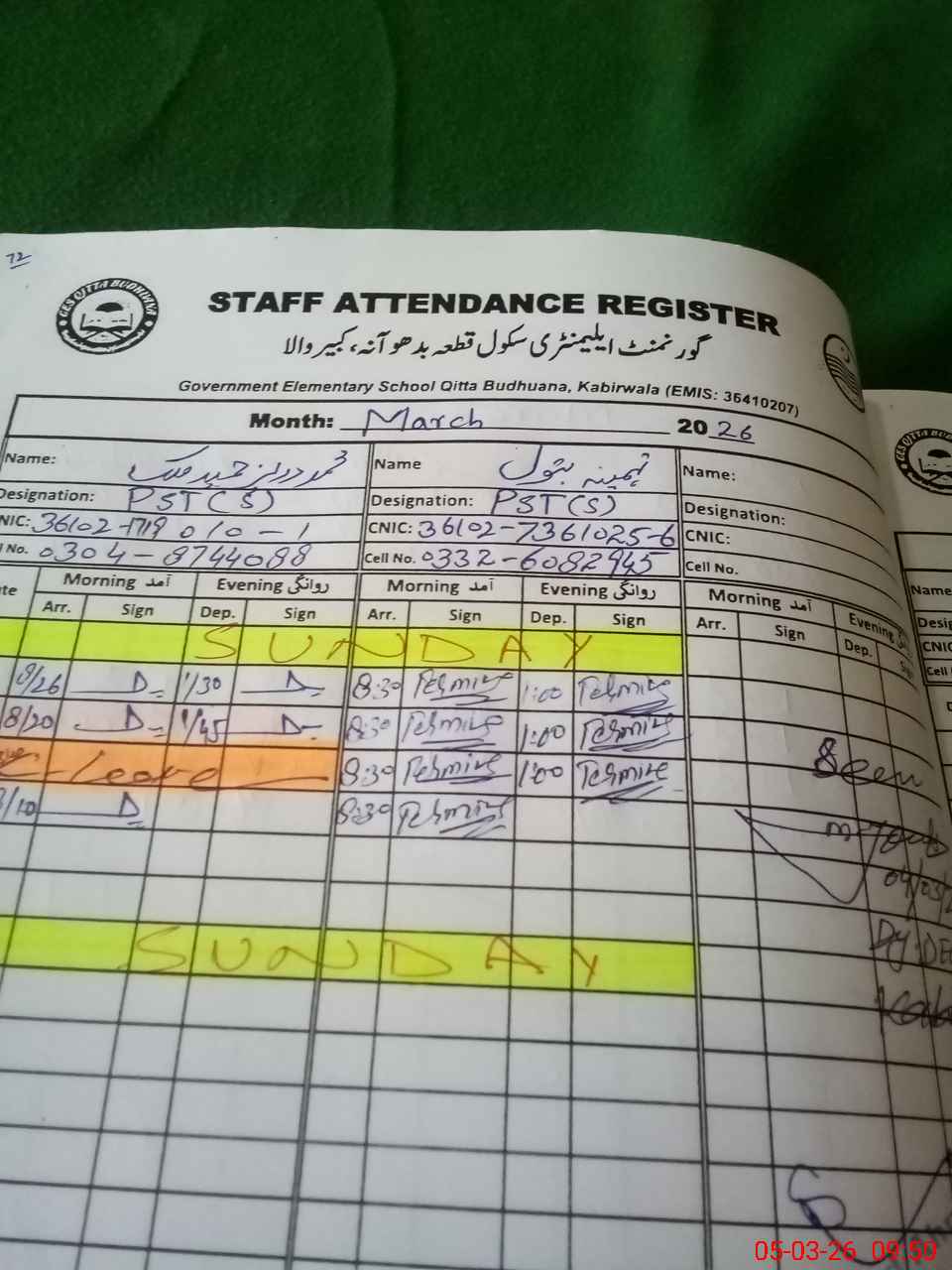 | Name: Kh**** Al**** Hu**** Designation: (School Headmaster's/Headmistress's) SST Sc Phone/Cell Number: 03**** |