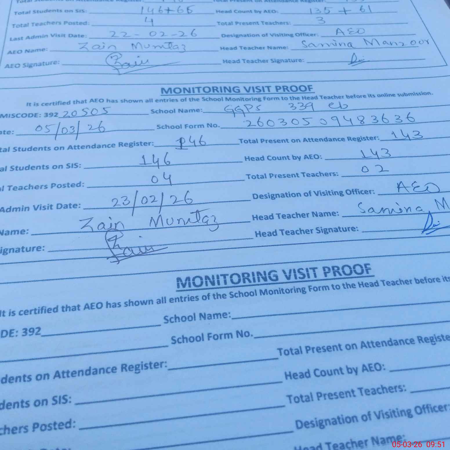| Monitoring Date: 05-03-2026 | Start Time: 05-03-2026 09:29 AM | End Time: 05-03-2026 09:51 AM | Name of MEA: Za**** Mu**** | |
