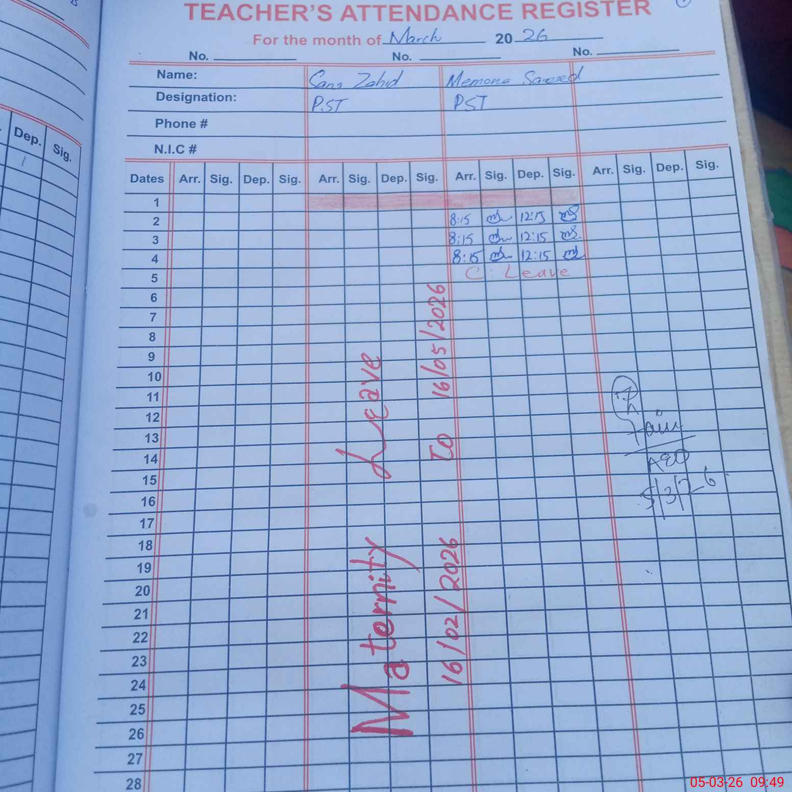 | Name: SA**** MA**** Designation: (School Headmaster's/Headmistress's) PST Phone/Cell Number: 03**** |