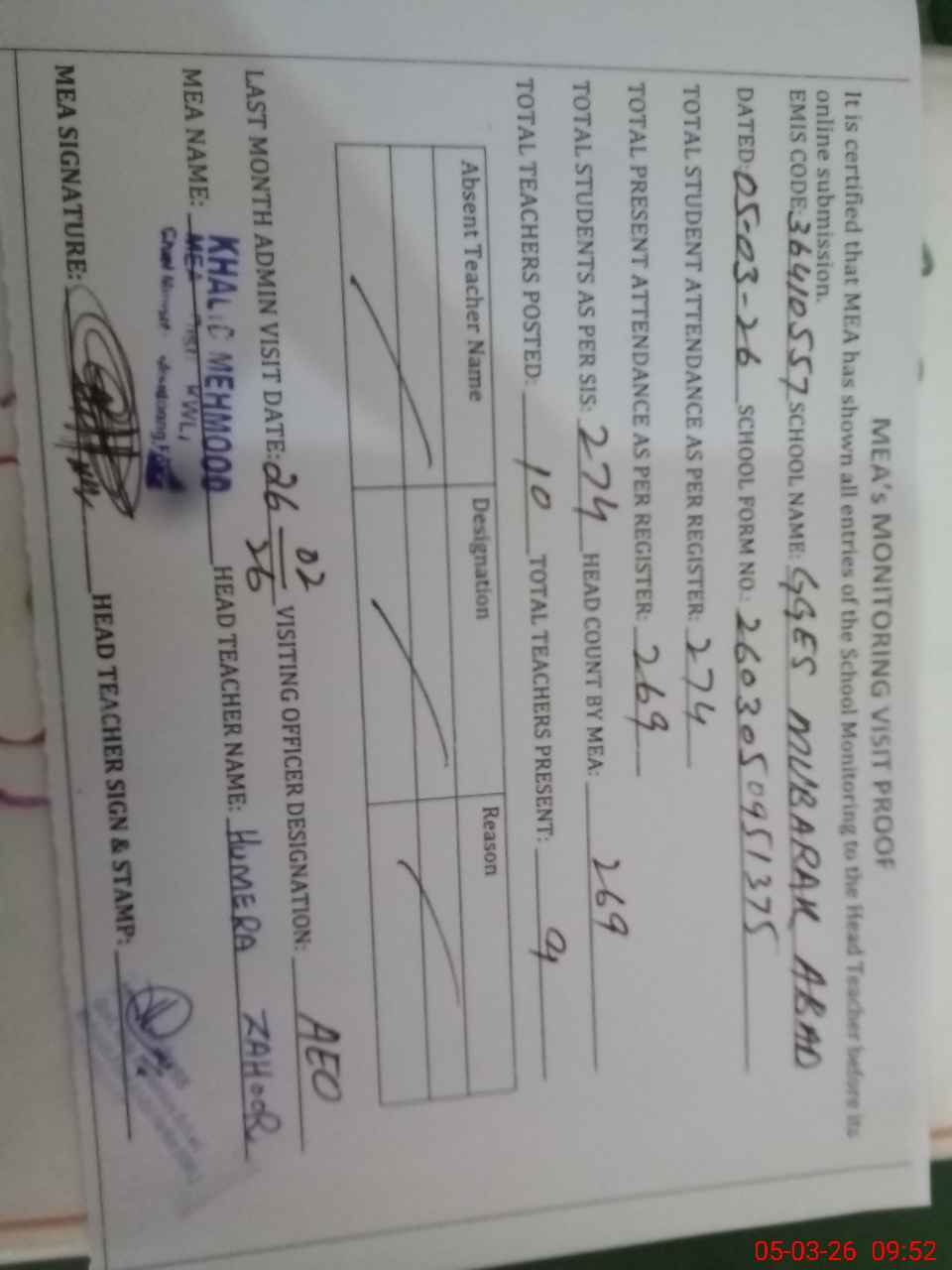 | EMIS Code: 36410557 | Name of School: GGES MUBARAK ABAD, ABDUL HAKIM | |||