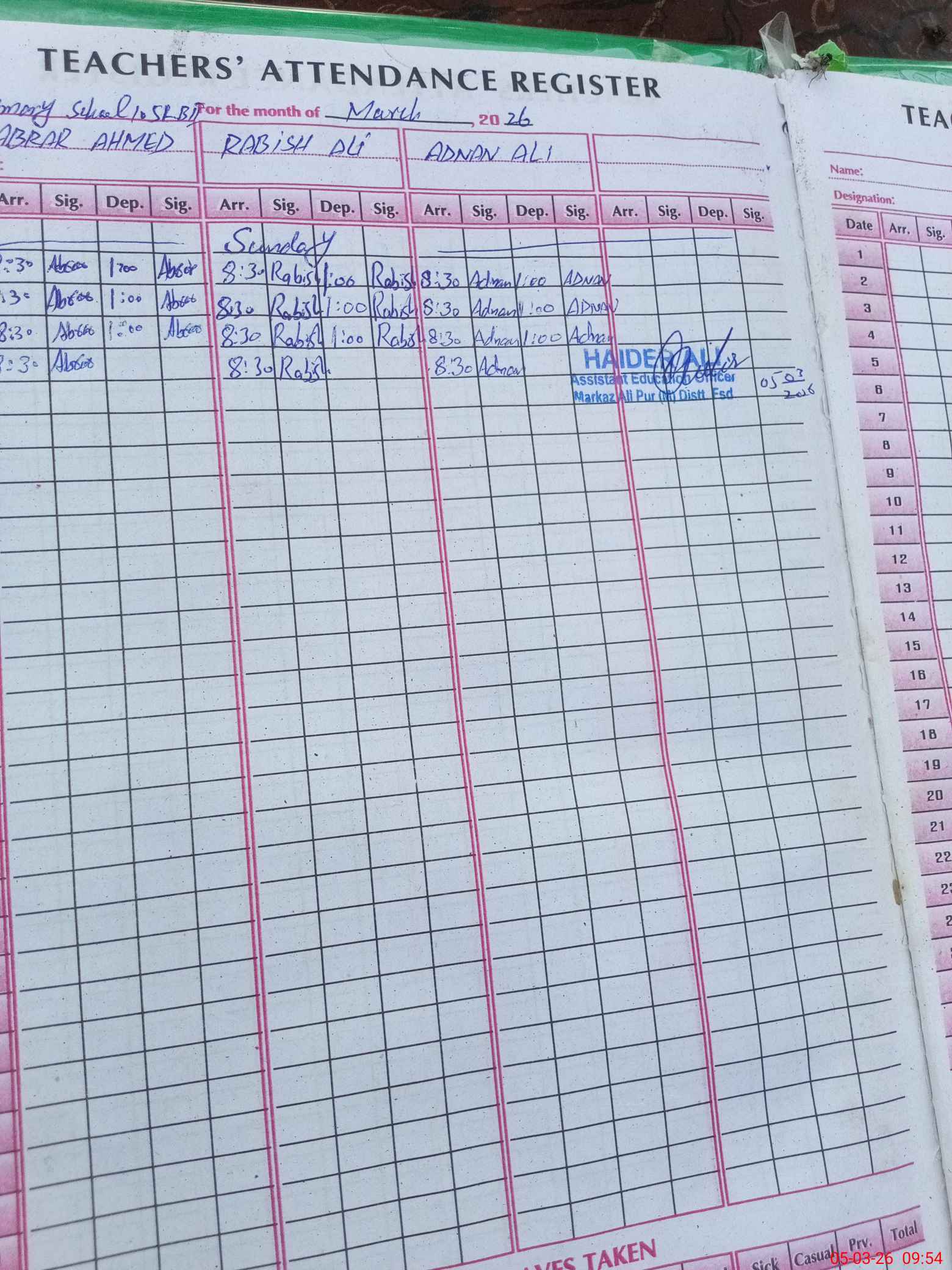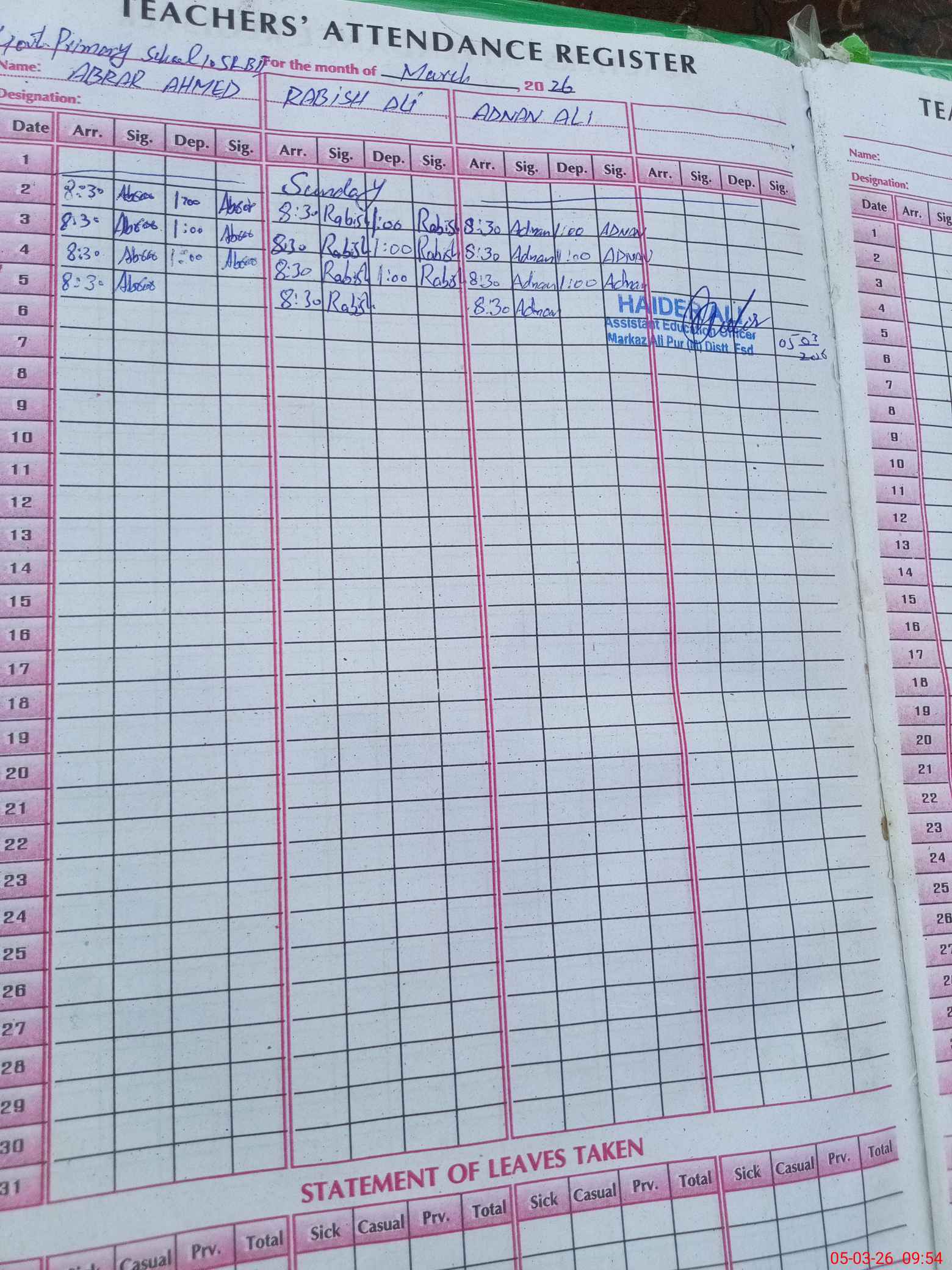 | Name: SH**** TA**** AH**** Designation: (School Headmaster's/Headmistress's) PST Phone/Cell Number: 03**** |