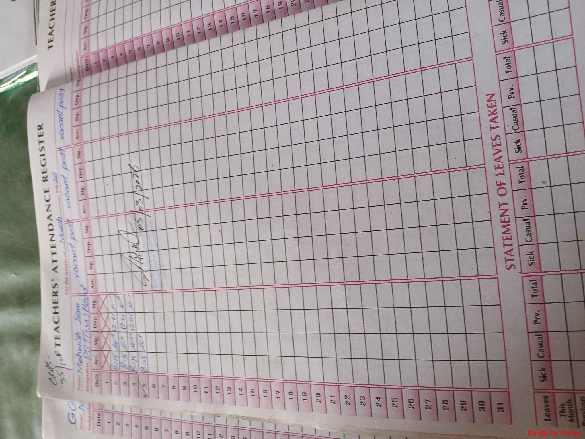 | Name: Me**** Ir**** Designation: (School Headmaster's/Headmistress's) PST Phone/Cell Number: 03**** |