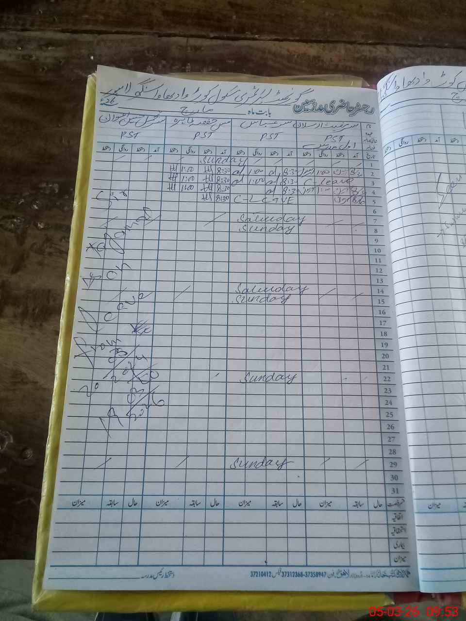 | CNIC | Full Name | Designation | R/C | Absence During Last Calender Month |