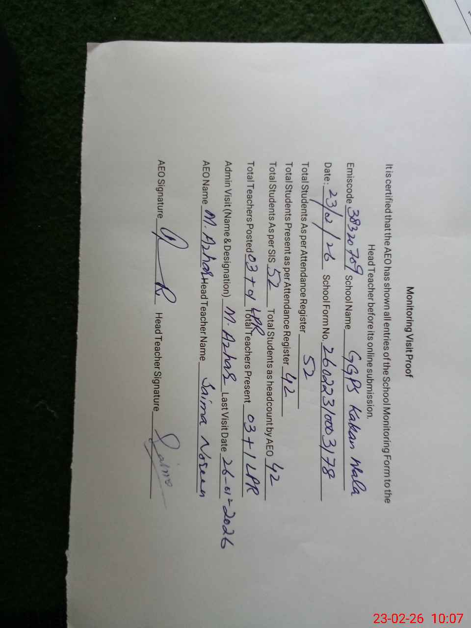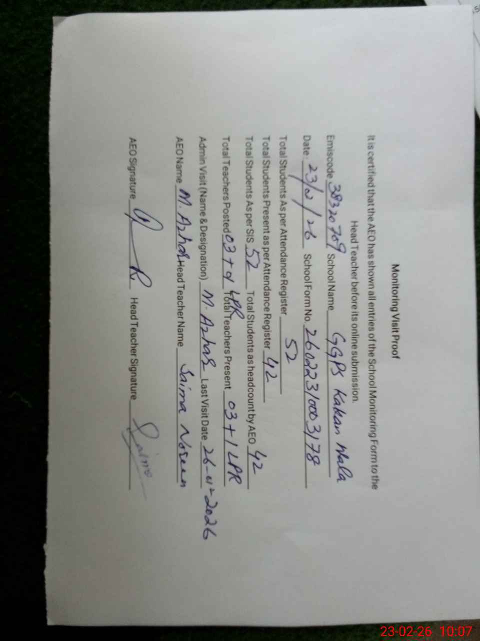 | EMIS Code: 38320709 | Name of School: GGPS KAKAN WALA | |||
