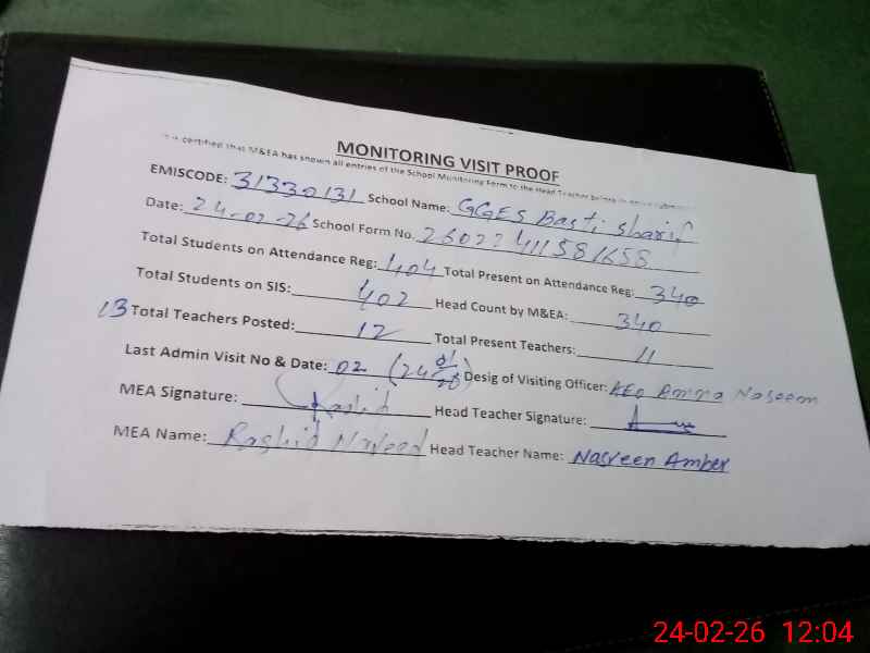 | EMIS Code: 31330131 | Name of School: GGES BASTI SHARIF | |||