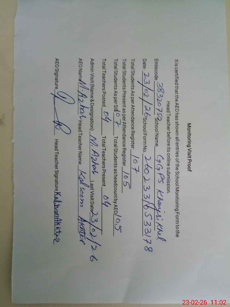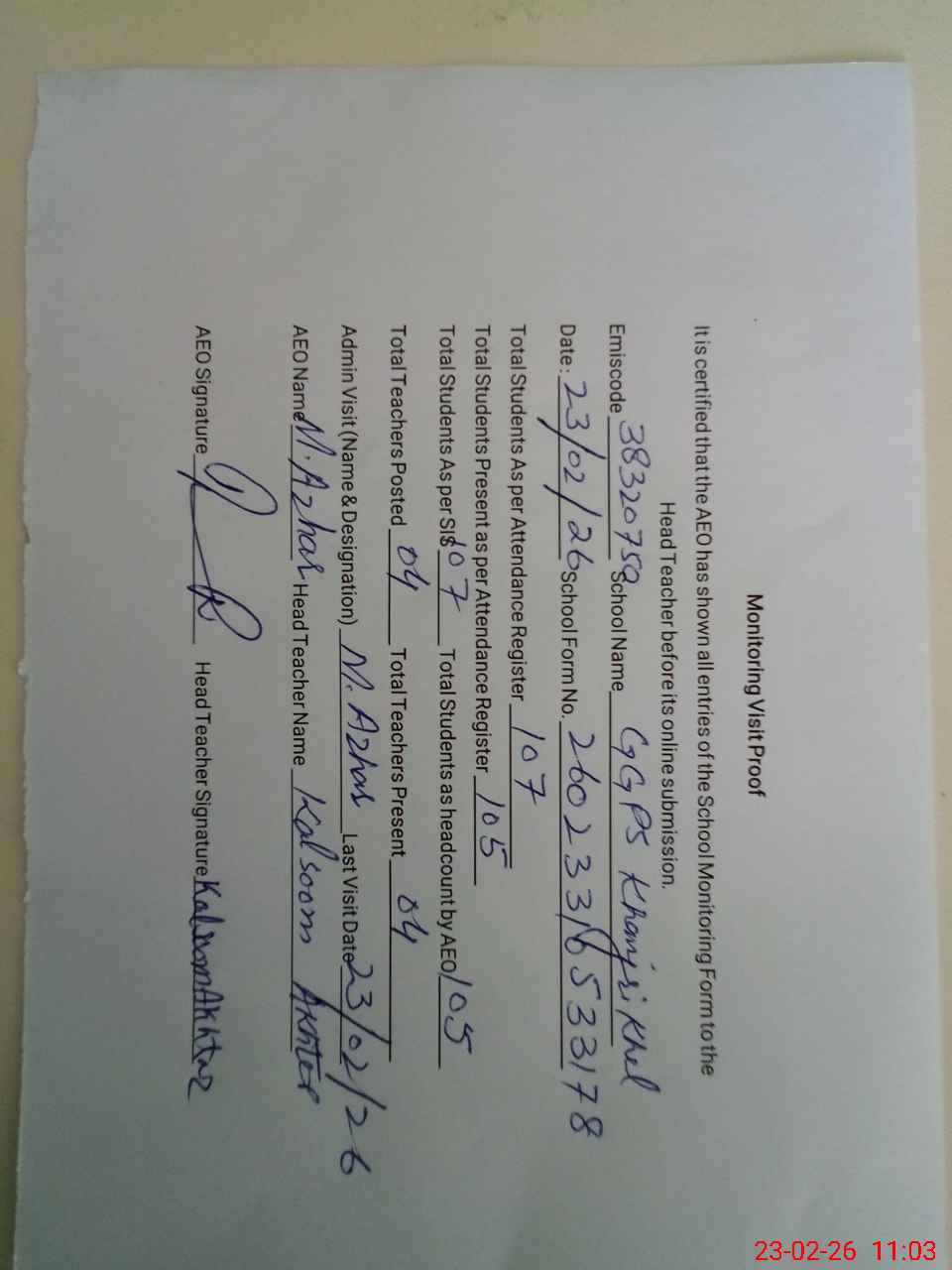 | EMIS Code: 38320750 | Name of School: GGPS KHANJRI KHEL | |||