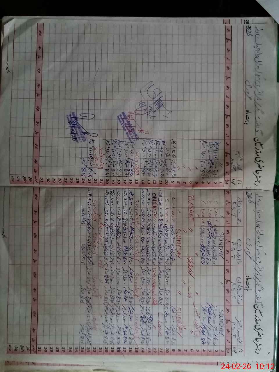 | CNIC | Full Name | Designation | R/C | Absence During Last Calender Month |