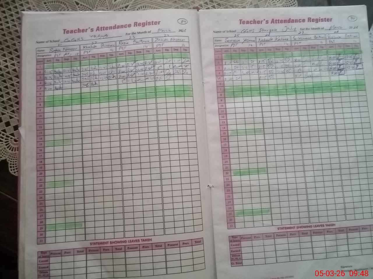 | Leave | Duty | Absent | Maternity | Medical | Ex- Pak |