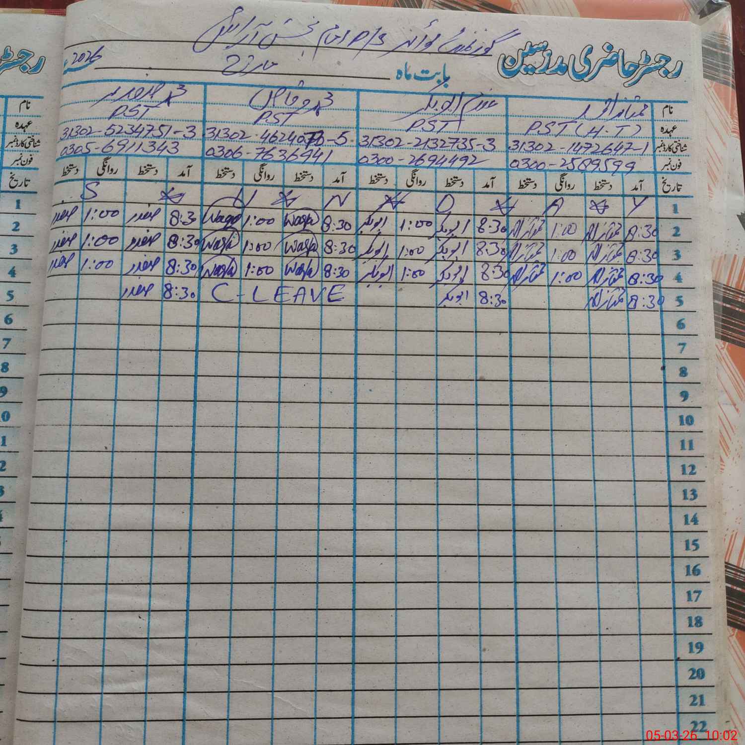 | Name: Mu**** Ah**** Designation: (School Headmaster's/Headmistress's) PST Phone/Cell Number: 03**** |