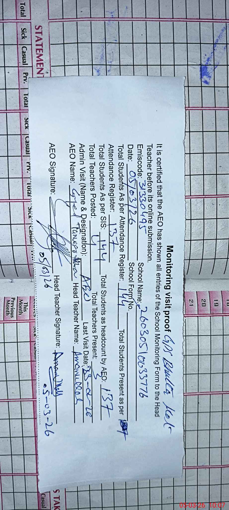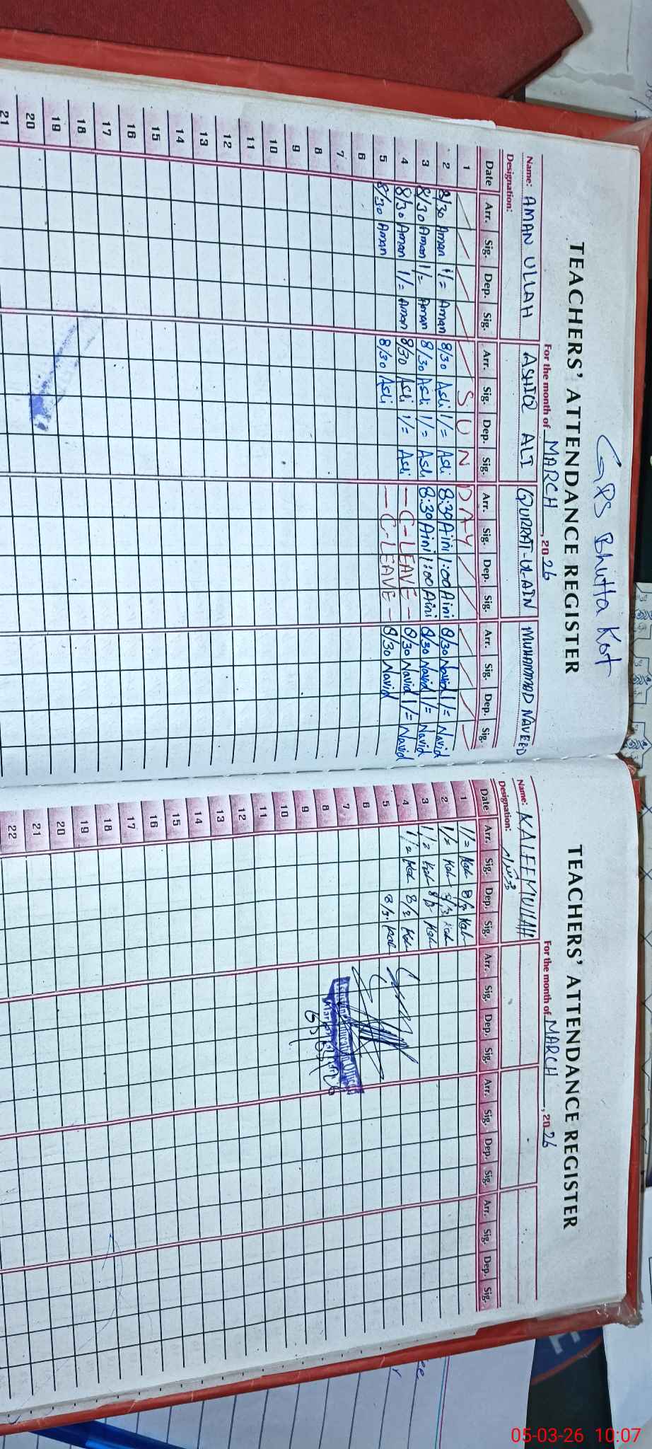 | EMIS Code: 31330495 | Name of School: GPS BHUTTA KOT | |||