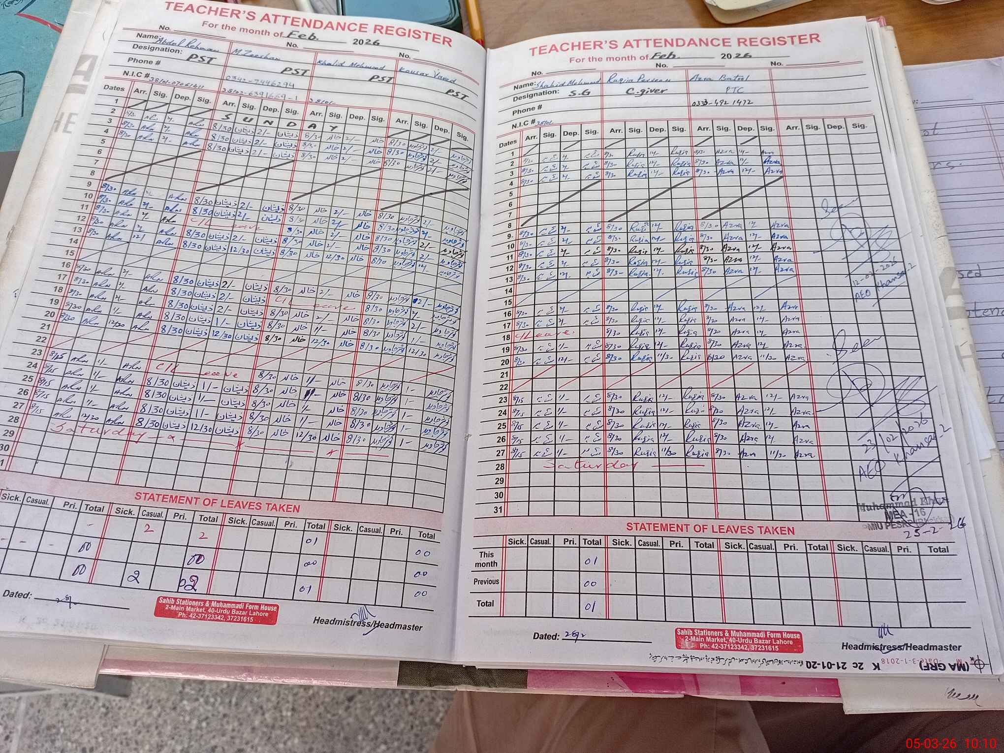 | Name: Ab**** Re**** Designation: (School Headmaster's/Headmistress's) PST Phone/Cell Number: 03**** |