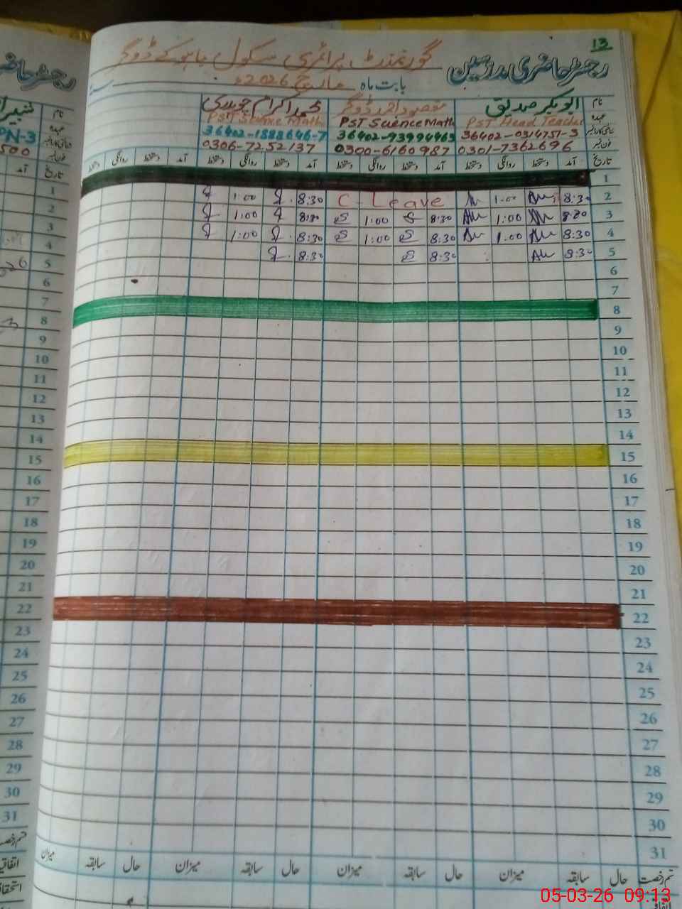 | Name: Ab**** Si**** Designation: (School Headmaster's/Headmistress's) PST Phone/Cell Number: 03**** |