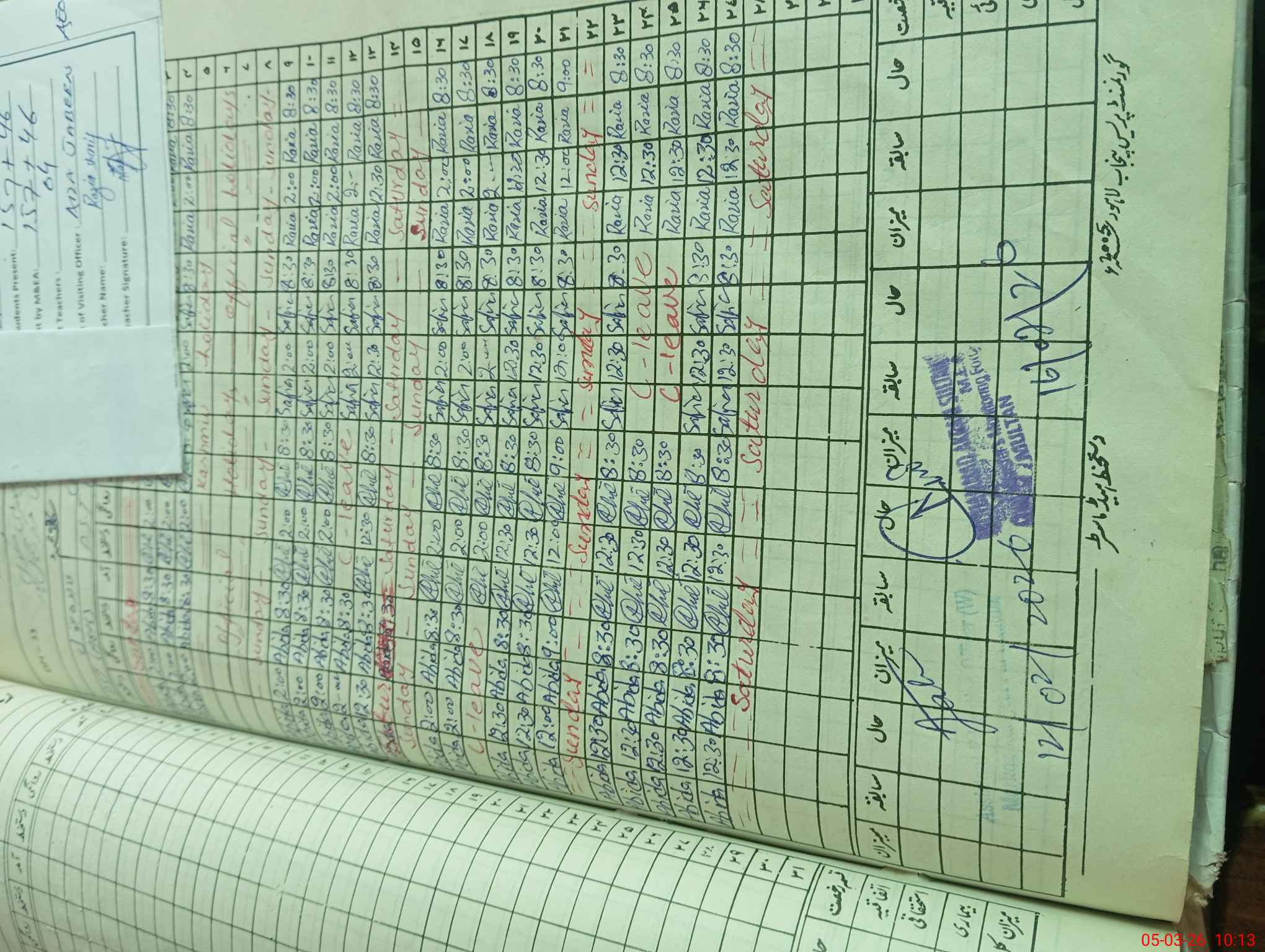 | CNIC | Full Name | Designation | R/C | Absence During Last Calender Month |