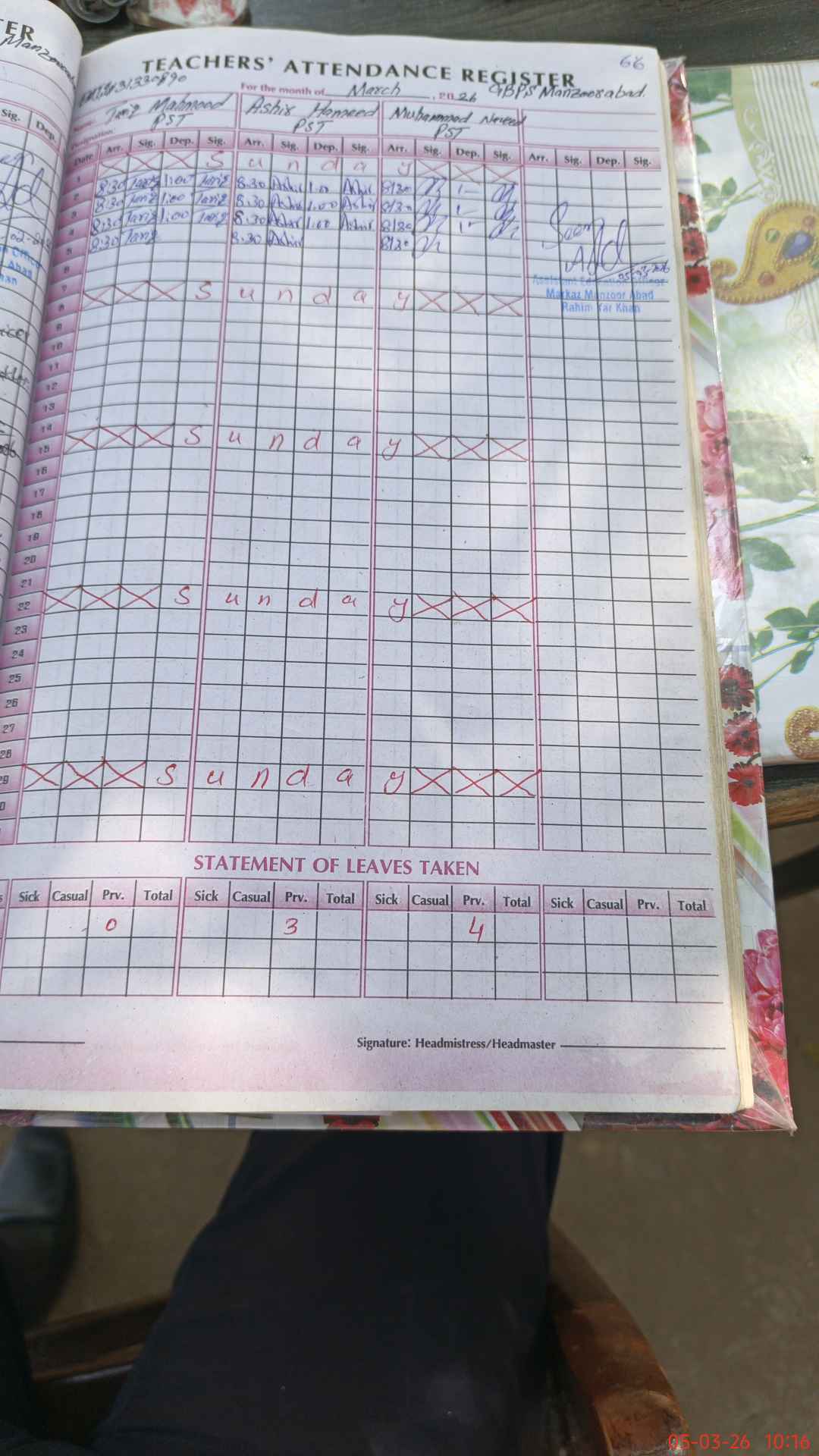 | Name: Ta**** Me**** Designation: (School Headmaster's/Headmistress's) PST Phone/Cell Number: 03**** |