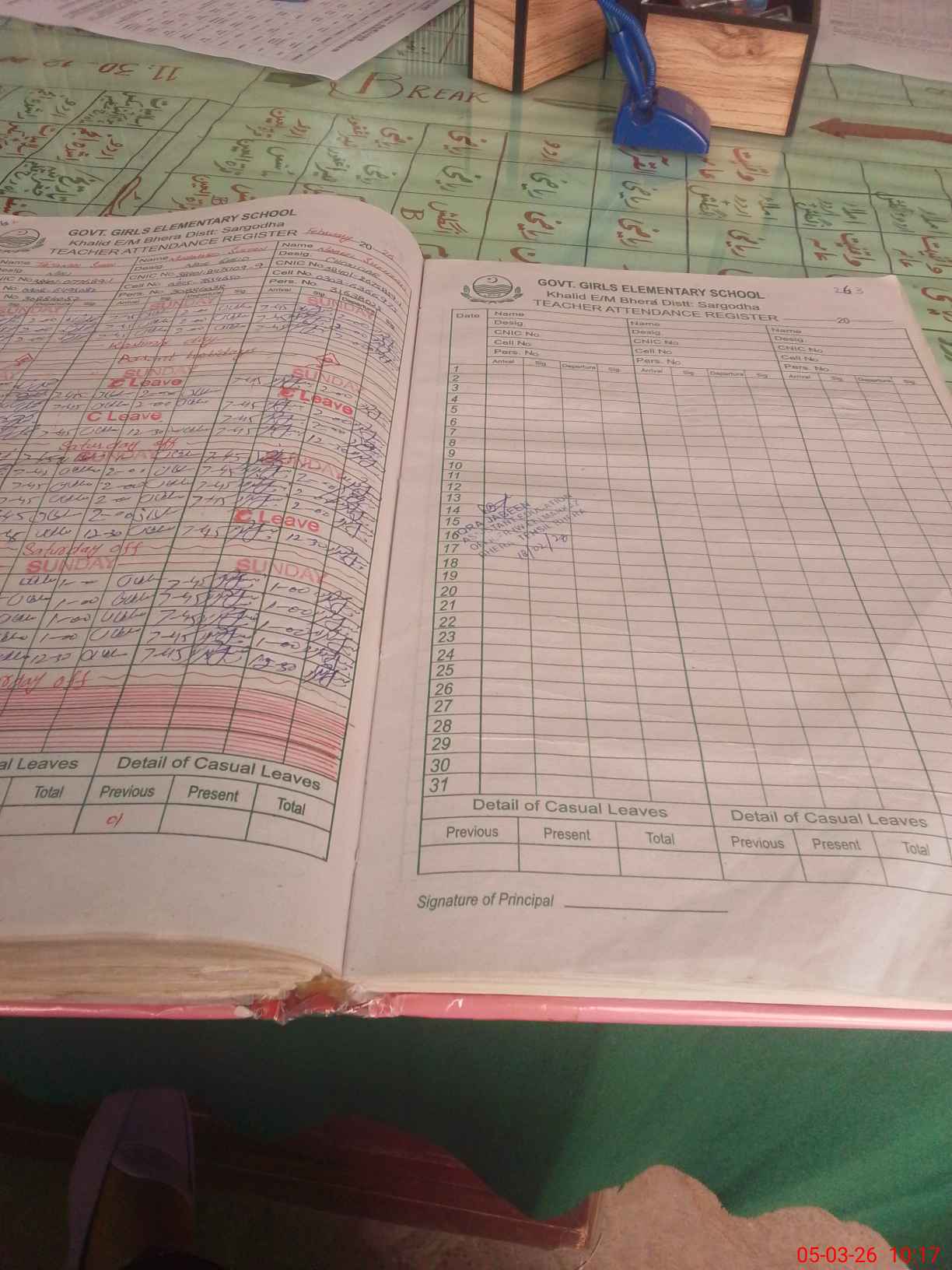 | Name: Kh**** Ra**** Designation: (School Headmaster's/Headmistress's) SST (Arts) Phone/Cell Number: 03**** |