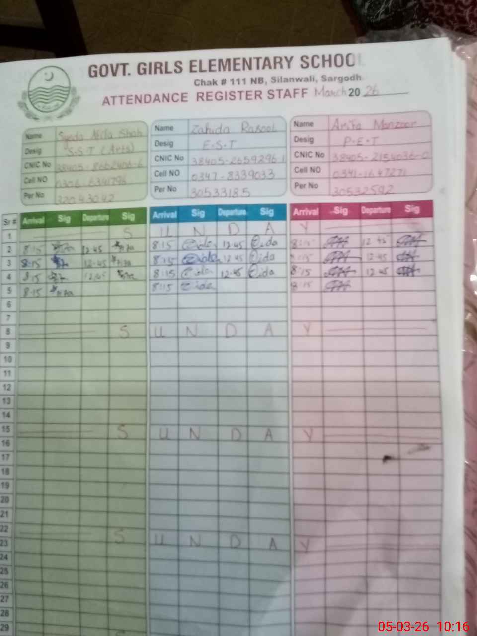 | Name: Sy**** AFI**** SH**** Designation: (School Headmaster's/Headmistress's) SST (Arts) Phone/Cell Number: 03**** |