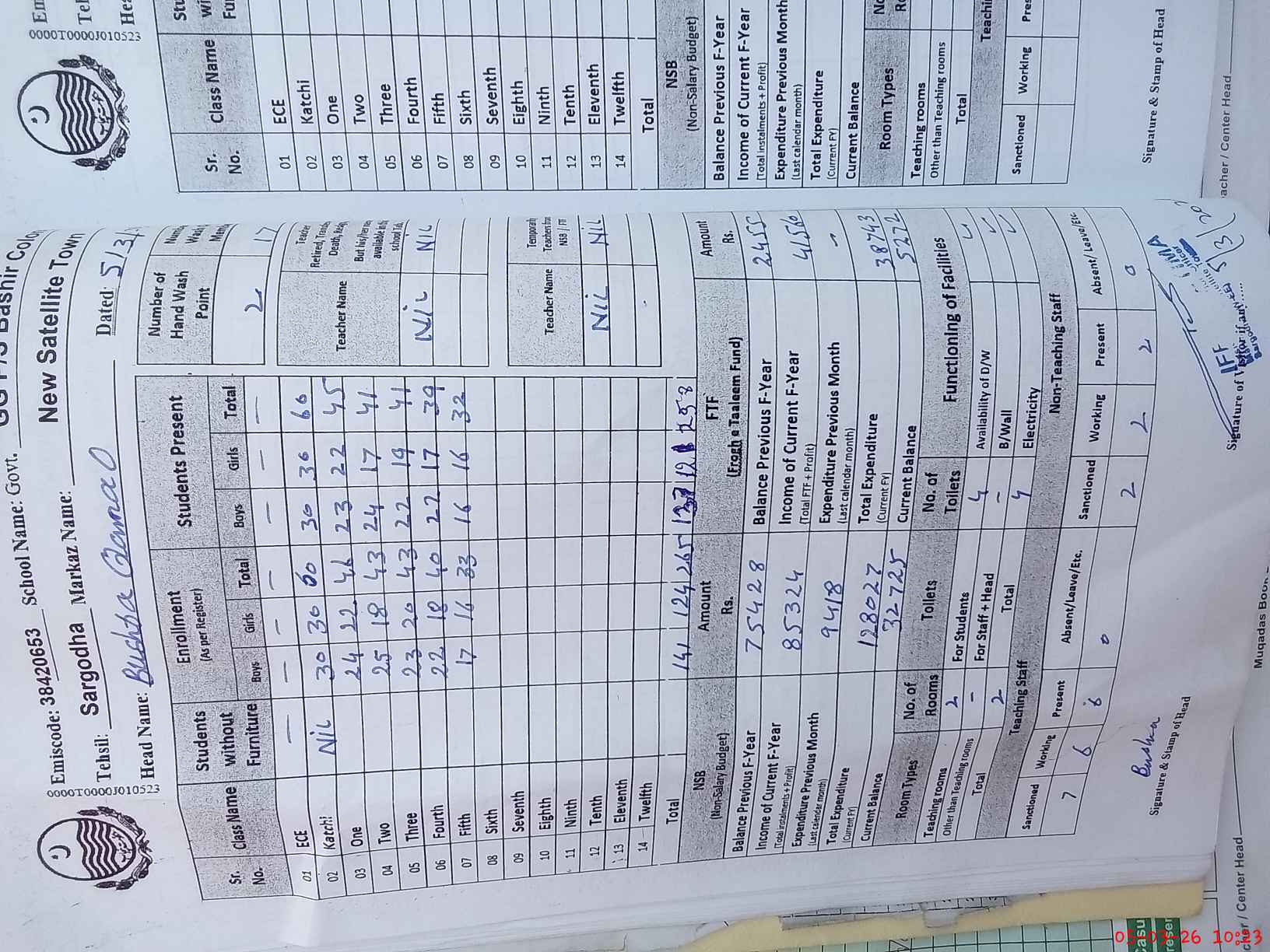 | EMIS Code: 38420653 | Name of School: GGPS BASHIR COLONY SARGODHA | |||